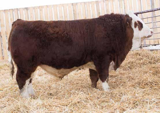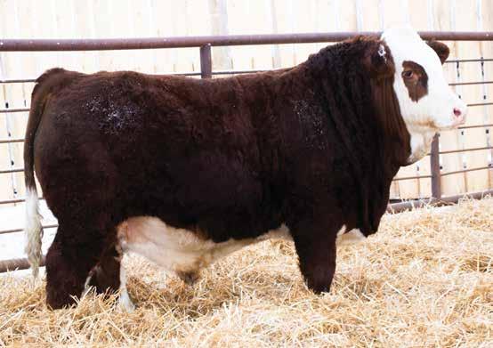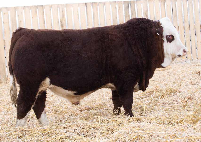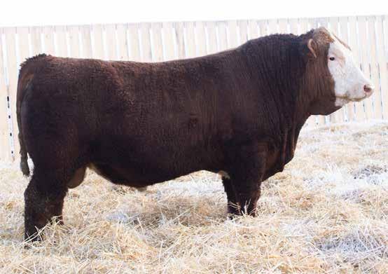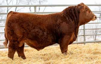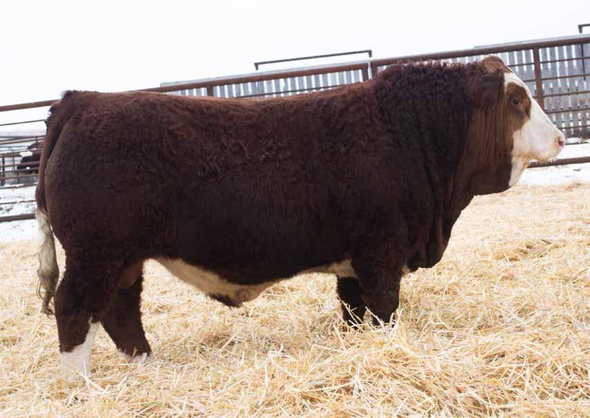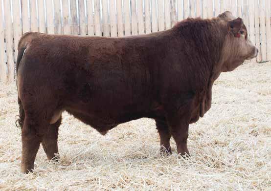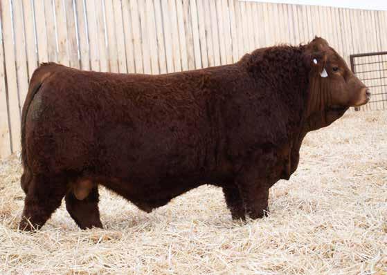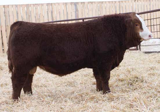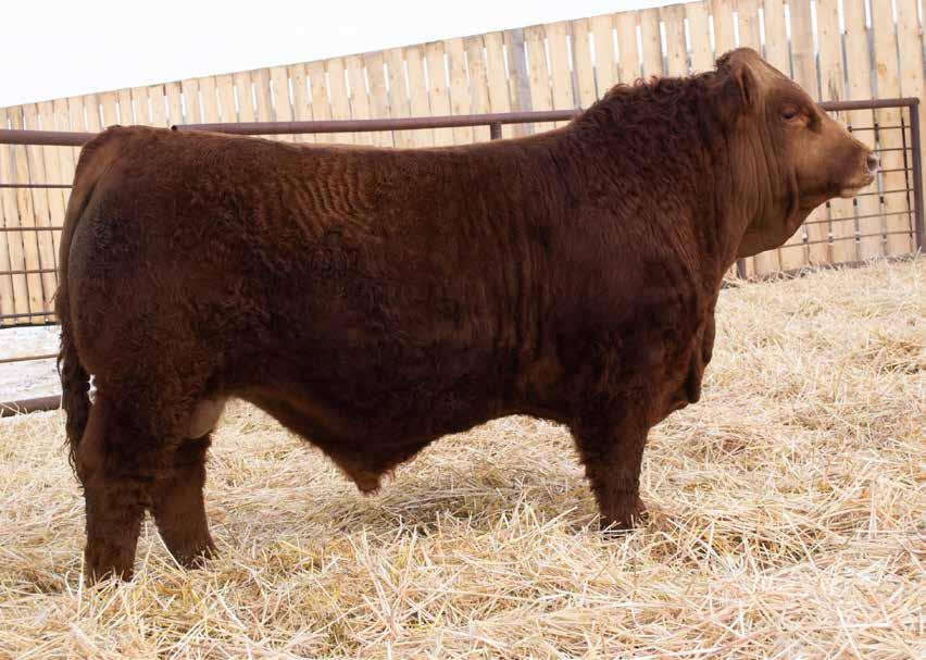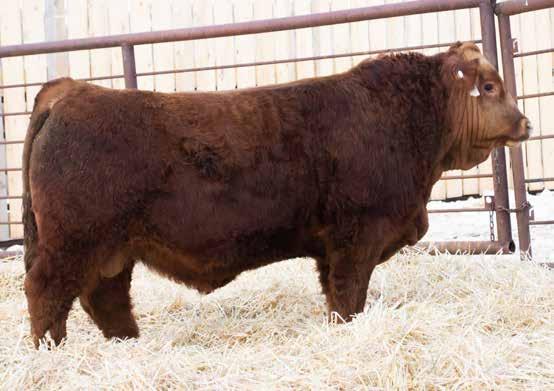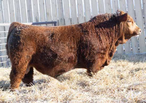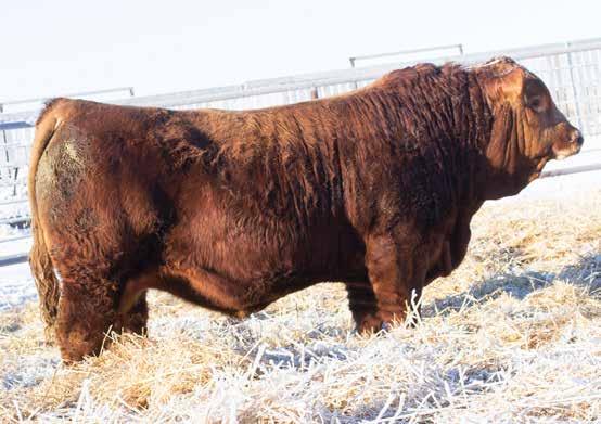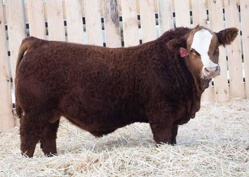 HOMO POLLED. PUREBRED. APPROVED FOR HEIFERS. This is another big haired, dark liver red calf off Top Tier that likely is my favourite. I enjoy breeding cattle that are coloured and built like this. His dam was purchased on the lead off pair at the Werstroh Dispersal where we bought 68L along with her dam 3H. Nice small birthweight of 83 lbs, another bull that will calve easy but be extremely growthy. Not too often can you see a first calf heifer wean off a calf at 925lbs! He is ranked high in the calving ease EPD and one that is going to really knock it out of the park. Come see his Dam in person, we feel she is the ideal type and kind of cow that we strive to build a cowherd around. You’ll know he’s the real deal once you get in the pen with him.