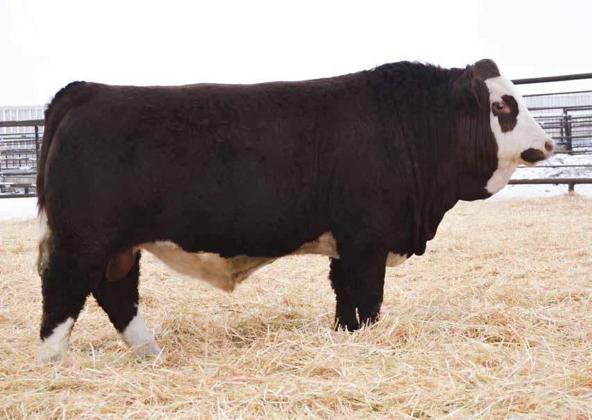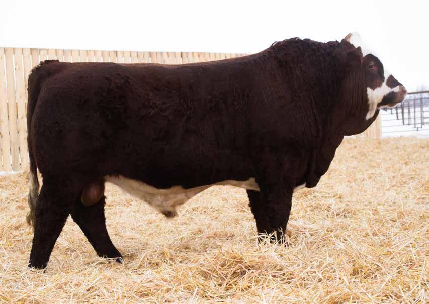 HETERO POLLED. PUREBRED. I always start the catalogue with a calf that I think would work for many different cattle producers. This one has really tugged at my heart strings, and I think that he would add a lot of important characteristics to a cowherd. The day he was born I thought, “My god I think this one will be cool next year.” A February 7th calf that can stand up with the older bulls and is a great representation of the type of bulls we strive to produce. His Dam, 67H is a black baldie female who raised a nice bull a few years back to Aumack Simmentals and Cody Adamson. When you come tour the bull pen, this is one that sticks out like a sore thumb. He is deep and soggy, super stout, and big barrelled. The Robb sire makes some big, nutted sons. 132N is one that I think is so right for today’s cattle business that I think would be beneficial to use in our own program. Retaining 50 Straws for In-Herd Use.