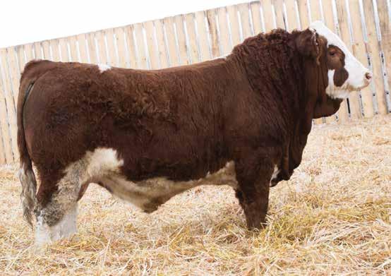 HETERO POLLED. PUREBRED. The great half fleck, half red Simmental The best cross I think in the cattle business! This guy is truly one of the coolest individuals in the pen. Big time haired, tons of top, and the definition of a beef bull! This Liberator calf shows how good the Simmental breed crosses between reds, and fullbloods are. He comes from the great Emma cow family that you will notice throughout the catalogue. His Dam 847F was a great female that we had for many years and assembled quite the female factory with many heifers being retained! We unfortunately lost her due to injury this fall. This one is likely to go out and work for a few different types of operations. Building females around or putting dollars in your pockets! 6N is a looker!