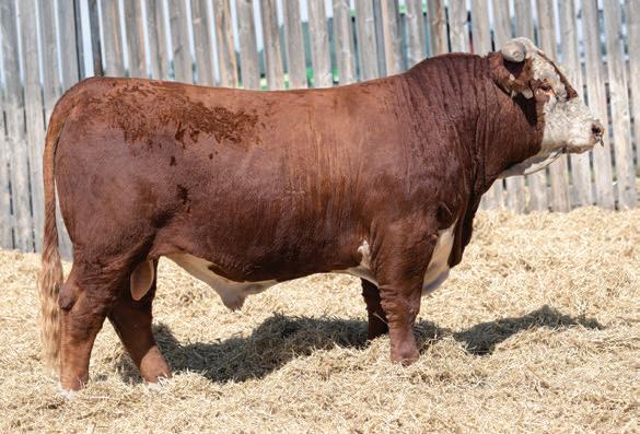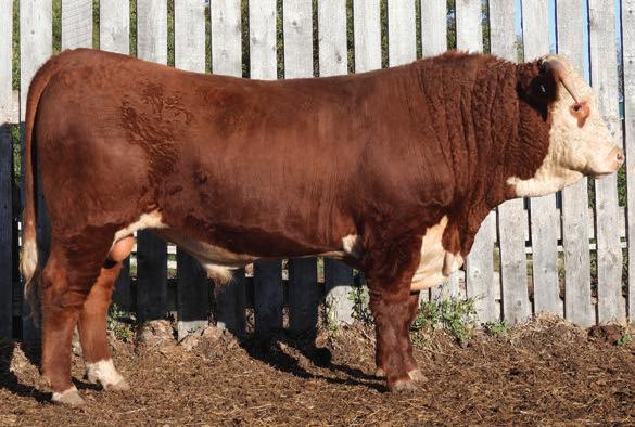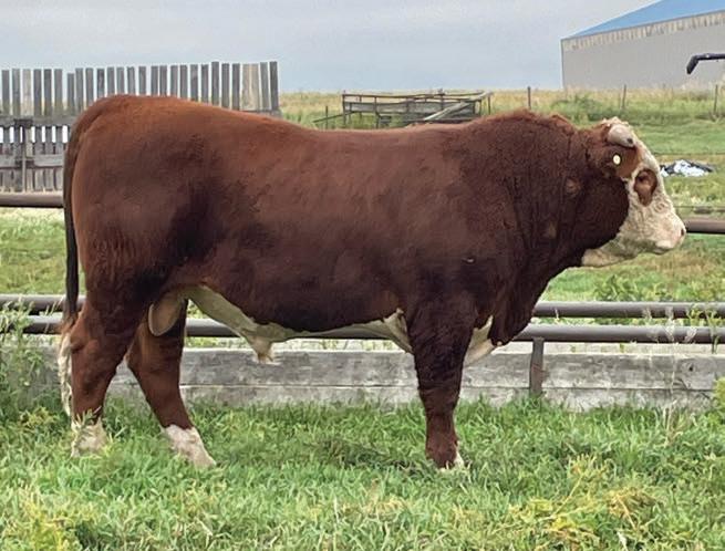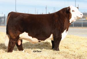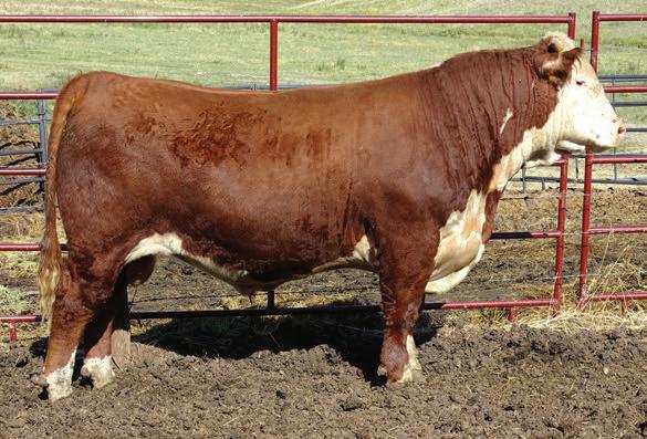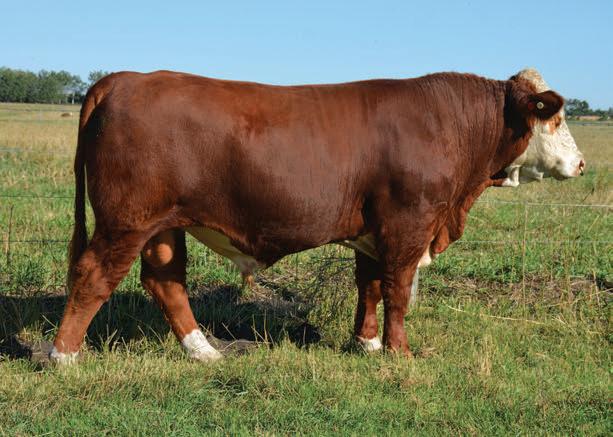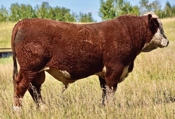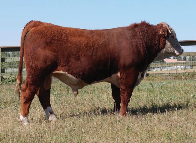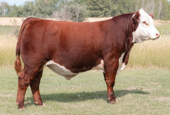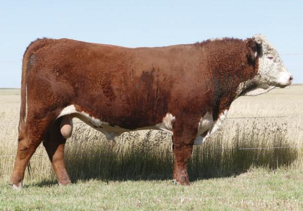 Lester 27L’s sire Rut 62Z Red Lad 37D was purchased from Rutledge Herefords as a twoyear-old. He was supposed to be in Ken’s Calgary pen but we were lucky enough to purchase him beforehand. Big Rut has always had great calves throughout the years with lots of size and depth in his calves.