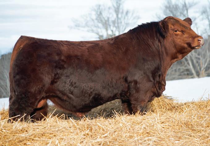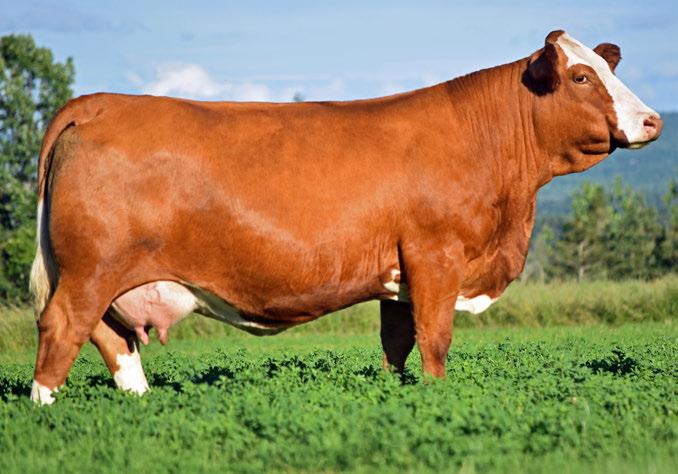 Shameless 48N is a rugged made and the biggest framed bull in the offering that checks a lot of boxes. Big bodied, stout hipped, and loaded with hair, he carries the herd bull look and presence that gets noticed. The only son from this mating to the great RF Flirt 824F, a donor we lost too soon but one that left a real legacy here. Big bodied, beautiful uddered, and consistent, she stamped her calves with shape, extra length, and natural thickness. Her sons go out and work, and her daughters have all been retained here and are now proving themselves in production.