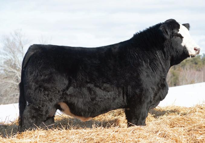 Cornerstone 23N is a true herd bull in the making. He’s a homo polled and homo black standout that combines power, presence, and real-world functionality. Bold ribbed, deep sided, and built with genuine muscle expression, he carries the herd bull look from every angle. His smooth shoulder, level top, and square hip tie it all together for a fault-free package. Backed by another proven, no-miss cow family, his dam, RF Flirt 034H, was a standout purchase who has matured into a bigbodied, beautiful uddered brood cow with real presence and production power. We’re excited to finally be blessed with a female out of this mating and have a standout full sibling in the replacement pen this year! With RF Caliber on the top side this genetic combination is predictable, powerful, and built to deliver value, making Cornerstone 23N a smart investment for those who appreciate maternal quality and performance.
