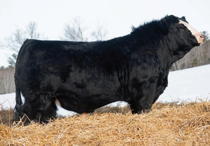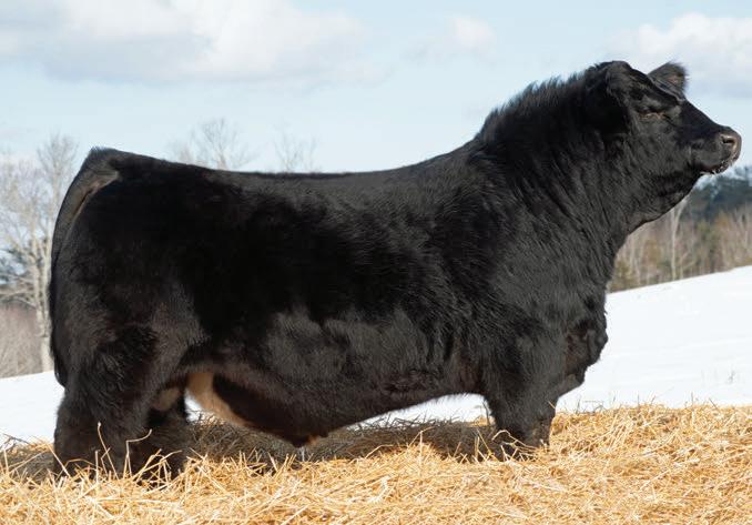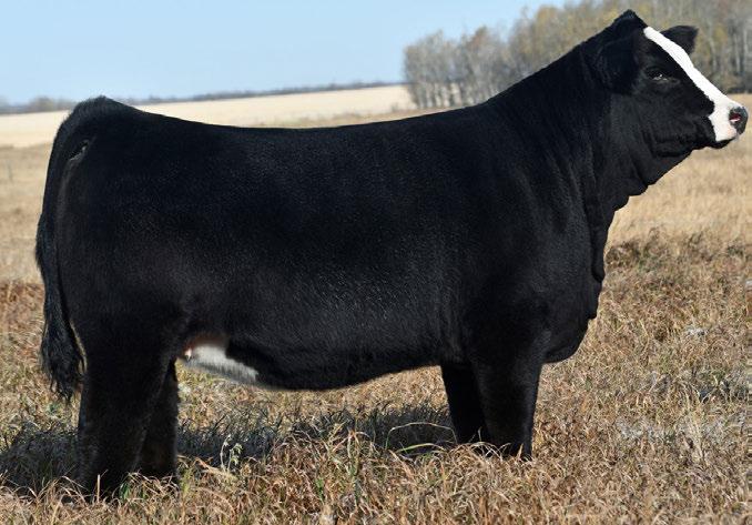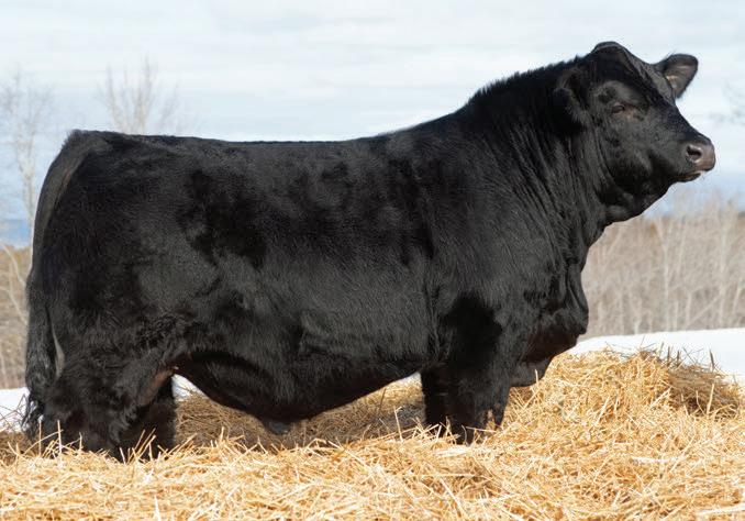 Quid 38N is the kind that stops you in your tracks to admire and might just be our favourite in the pen. He’s a deep sided, stout topped, awesome haired bull with the muscle shape and dimension to add pounds where it pays. He comes in a homo black and polled package and stands on a strong foot with the structural integrity to cover cows and last for years. His pedigree is stacked, blending calving ease with real-world performance. His first calf Caliber dam stems from one of our favourite cow families and has matured into a beautiful young cow with a tremendous udder. The strength of this family is proven, with two full sisters already selling through our female sale to Maxwell Simmentals and Kingswood Simmentals. If you’re looking to add shape, depth, and marketability to a calf crop while building a set of females that last, Quid 38N fits the bill. And for those who enjoy the show ring, he’s the kind of bull that could make a serious run at banners come fall.