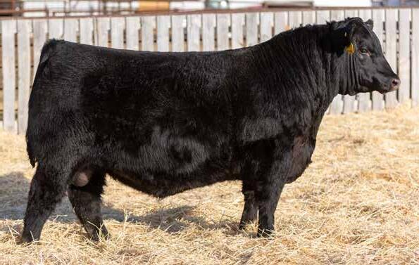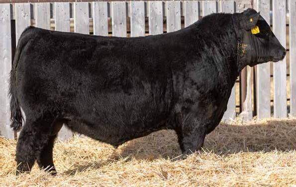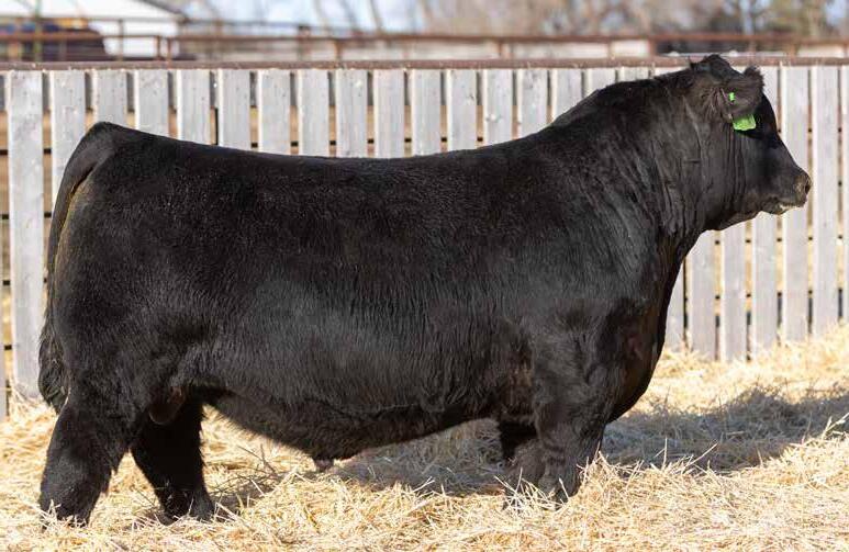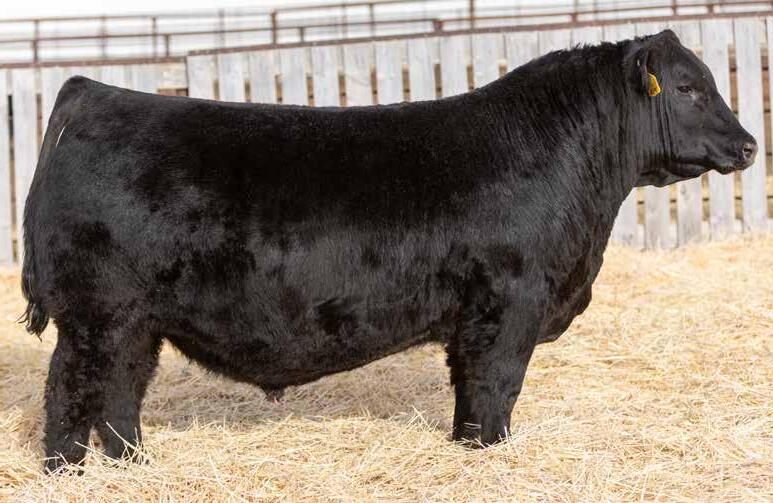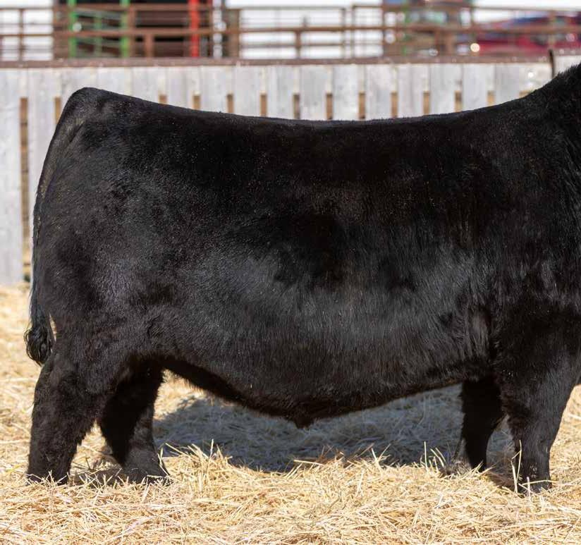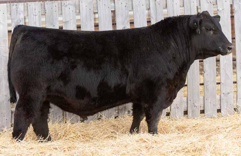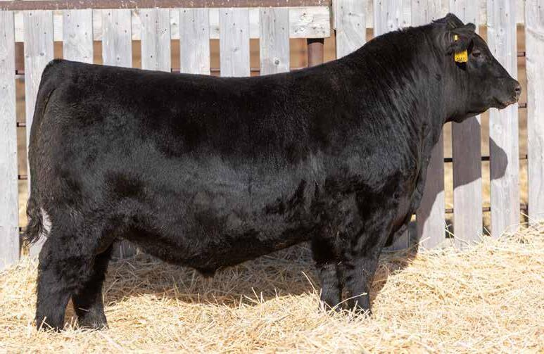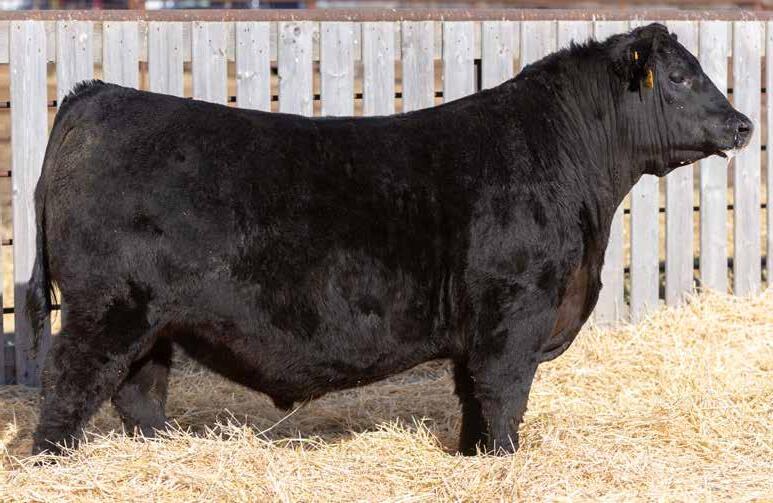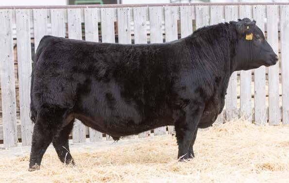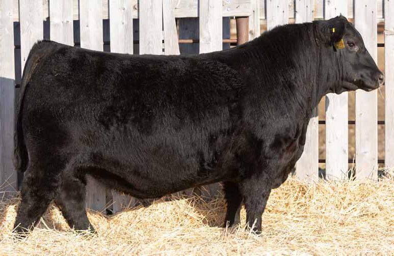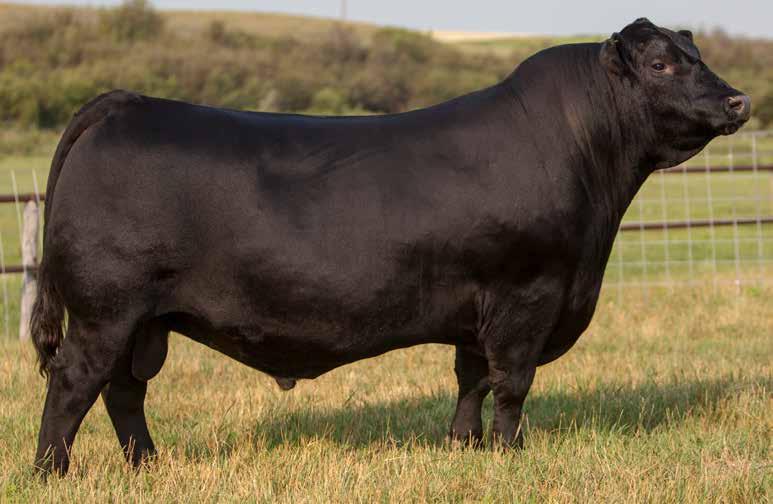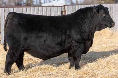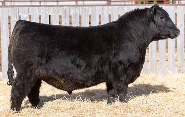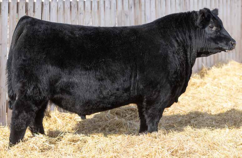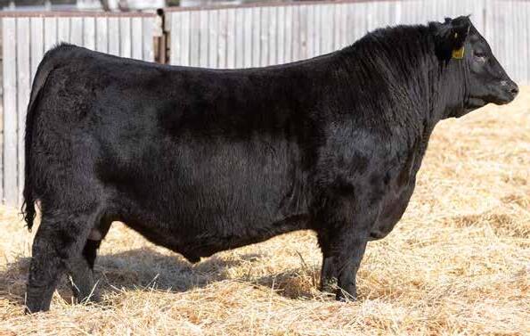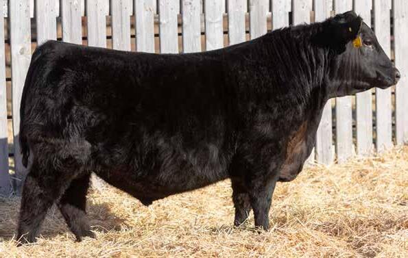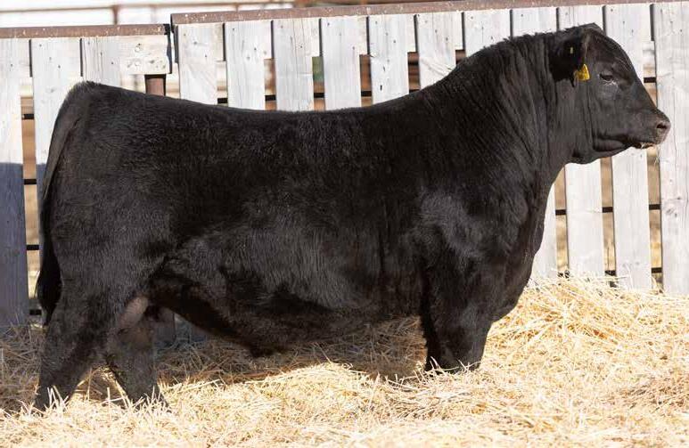 Recommended for heifers. A long-bodied, smooth-made son of Belvin May City. The grandam has Pathfinder status and was in production here until she was 14 years of age. She was the epitome of angularity and maternal look.