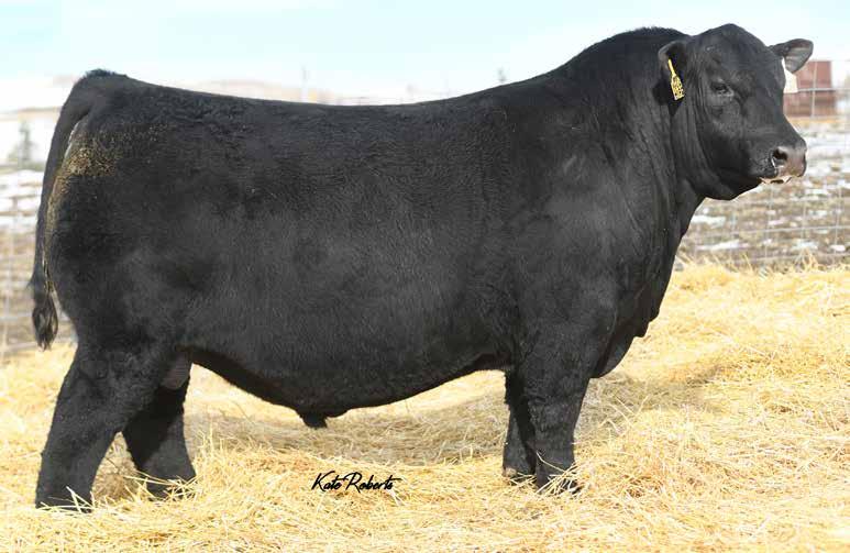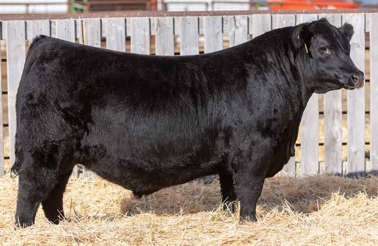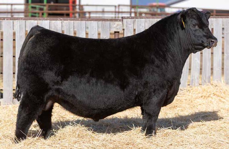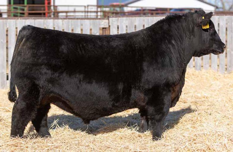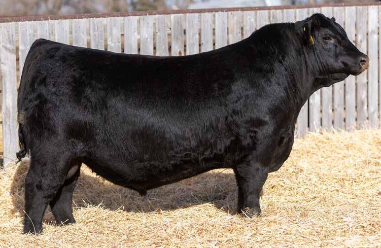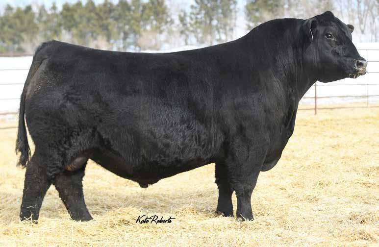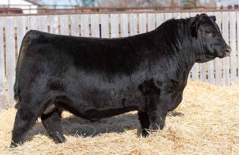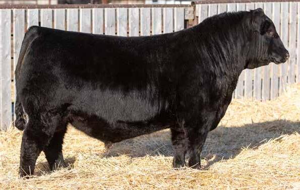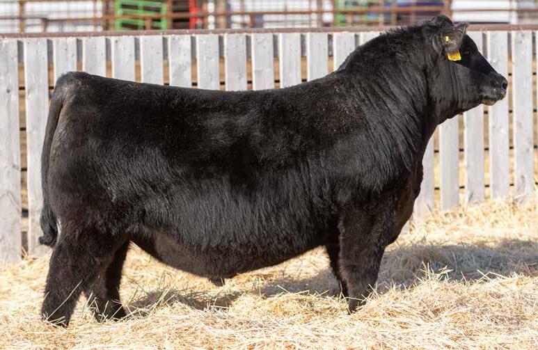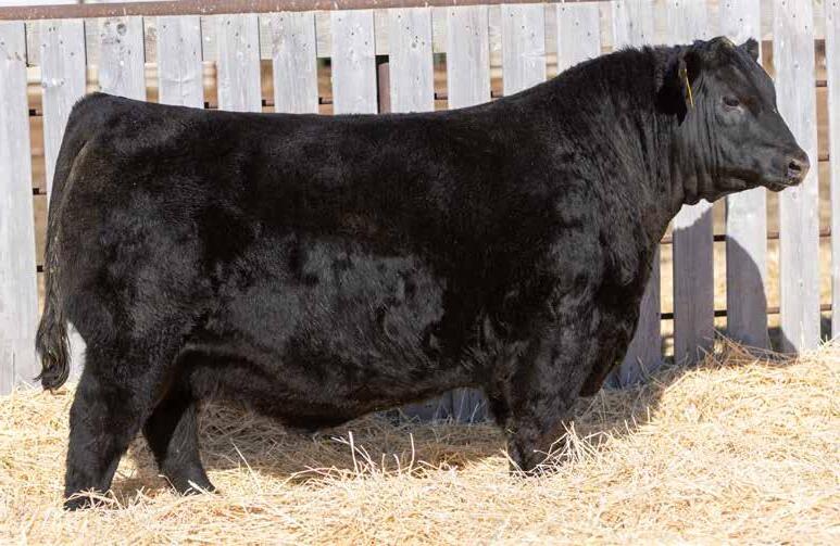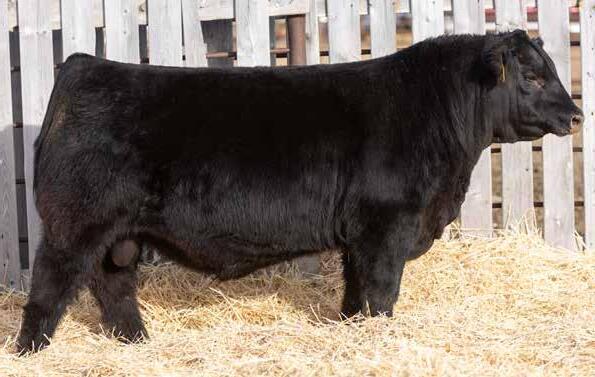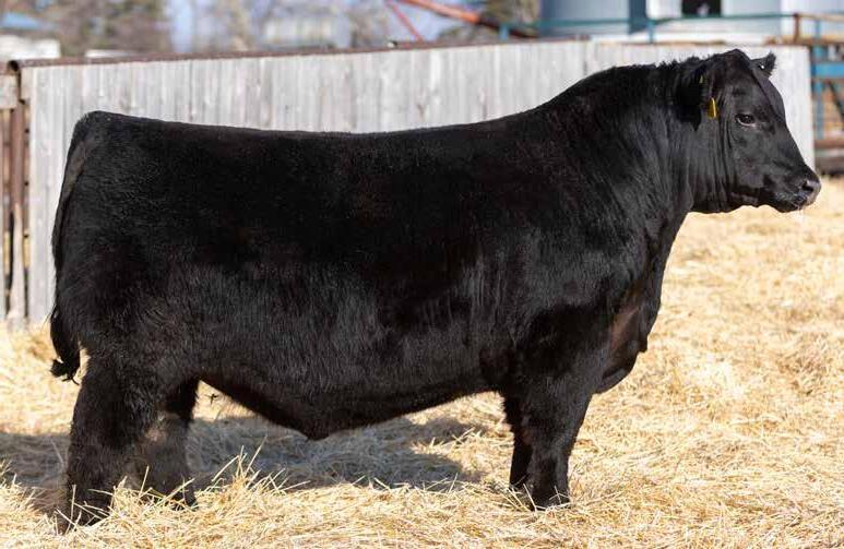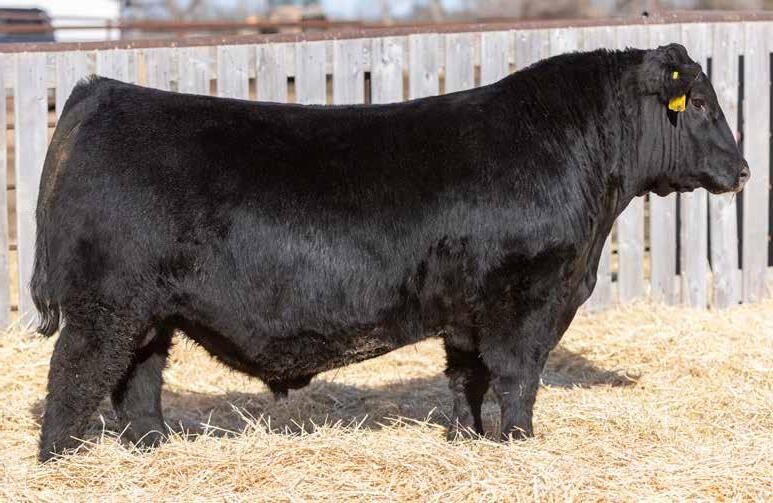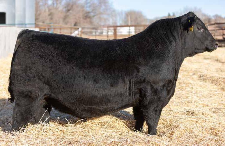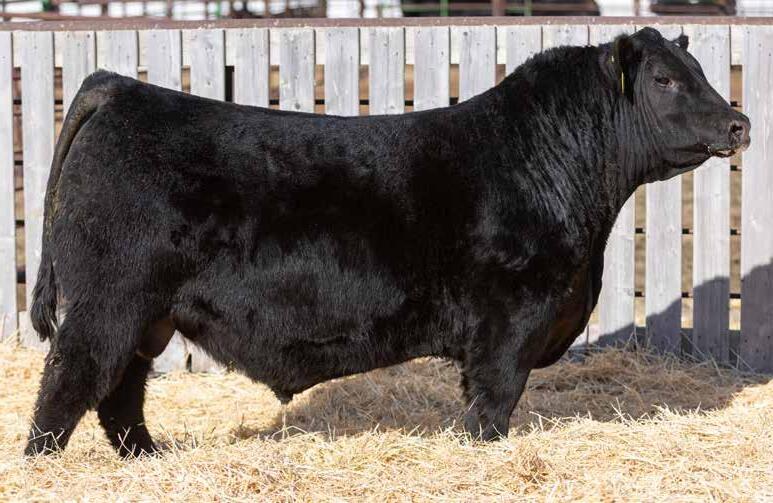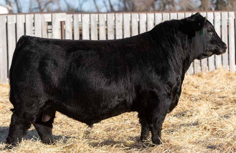 Recommended for heifers. A long-bodied, smooth-made son of Belvin May City. The grandam has Pathfinder status and was in production here until she was 14 years of age. She was the epitome of angularity and maternal look.