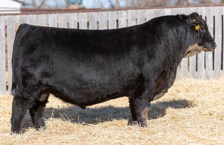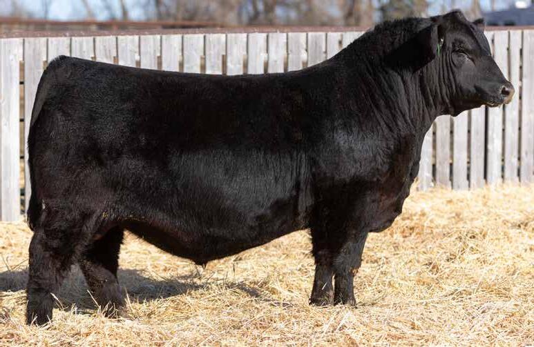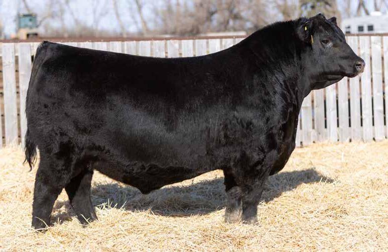 Recommended for heifers. Brooking Black Adam 5205 is our son Kiefers’ bull. His dam is an impressive young female we chose for Kiefer to start his cowherd with. The grandam, Flag Abigail 10671, was an ideal female. Really angular and feminine with a picture-perfect udder.