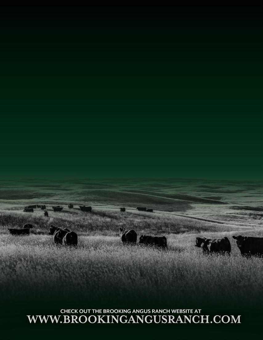 BROOKING ANGUS RANCH IS RETAINING ONE-THIRD REVENUE SHARING SEMEN INTEREST IN EVERY BULL SELLING IN THIS SALE. BROOKING RESERVES THE RIGHT TO USE SEMEN FOR IN-HERD USE ON ALL BULLS SELLING AT SELLERS COST.