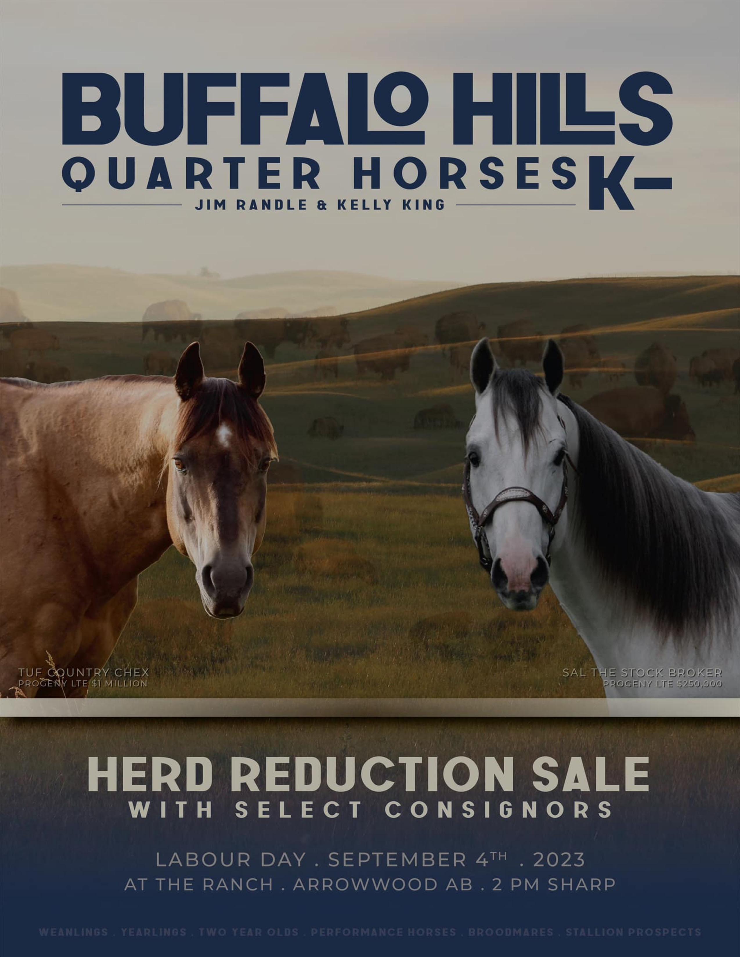 1. The Buffalo Hills Quarter Horses Herd Reduction Sale will be a public live event, as well as a live broadcasted sale. The sale will run online through DLMS, and online bidders can register through DLMS. Anyone wanting to register for phone bidding contact Ramona Hart 403‐625‐0990. In order to register to phone bid, an individual must provide confirmation of available funds.