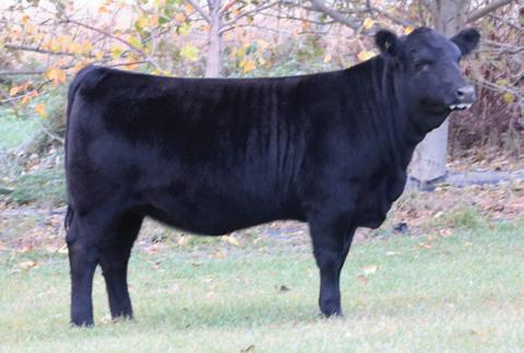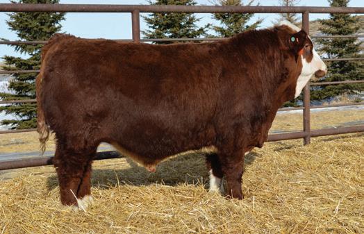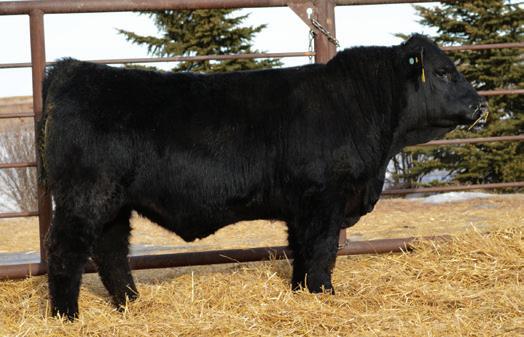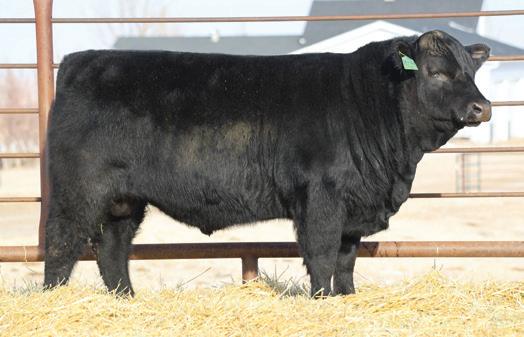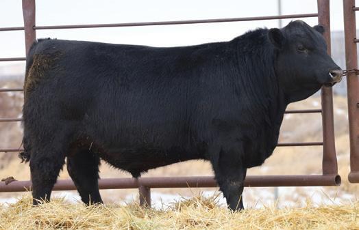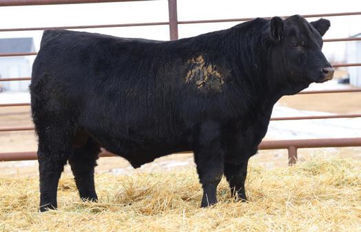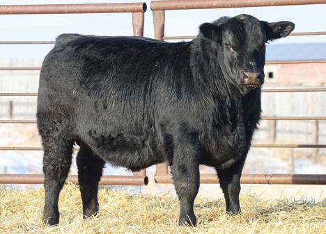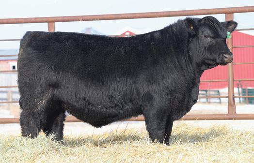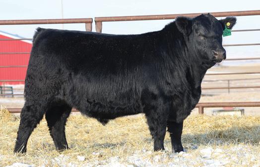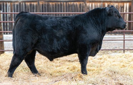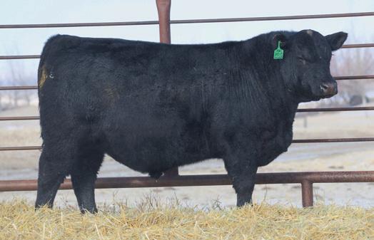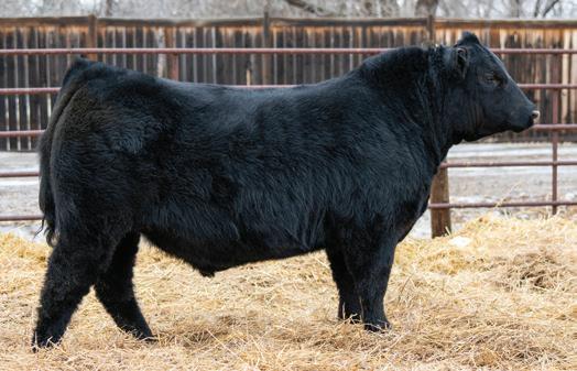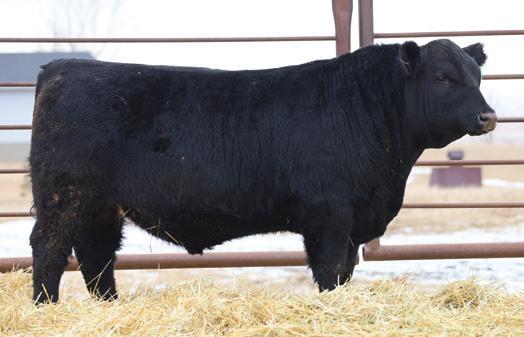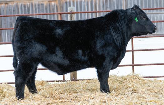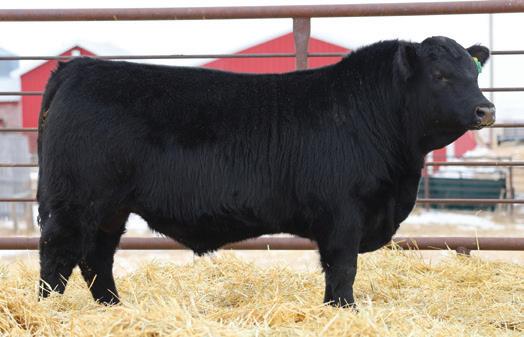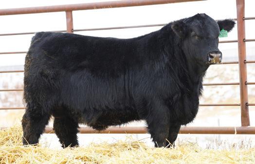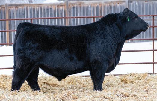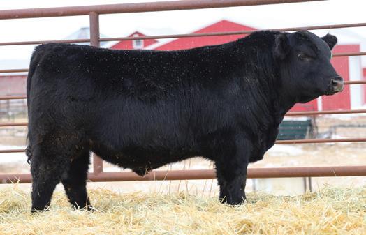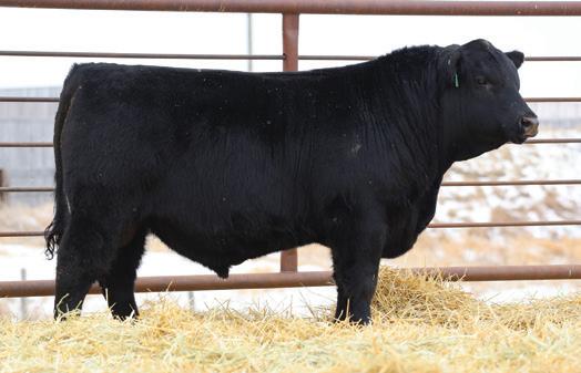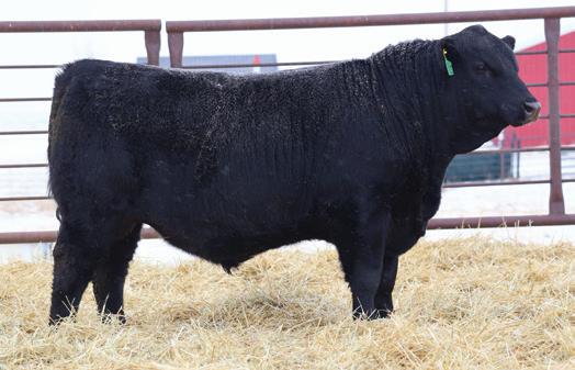 Here is one of the younger bulls in the o ering but a very impressive bull. is Playbook son is a stout, dense made bull that has lots of eye appeal. You can’t help but stop and admire this bull when he gets out on the move. His dam is a daughter of Harvestor 66D, a bull that we used widely in our program for many years. Females are top notch mothers with good udders, easy eshing, and just all around honest hard working mama cows.