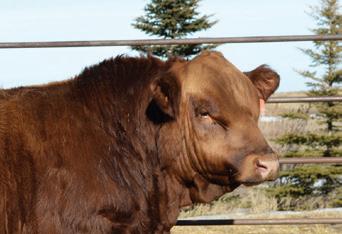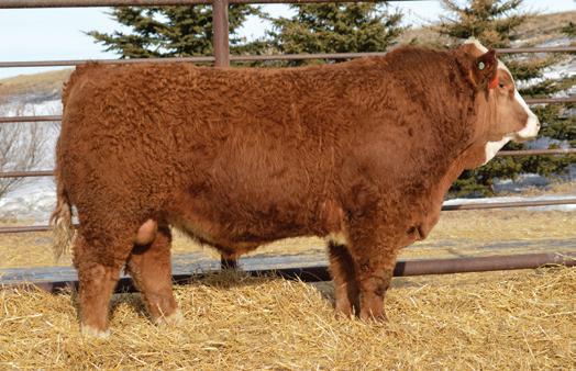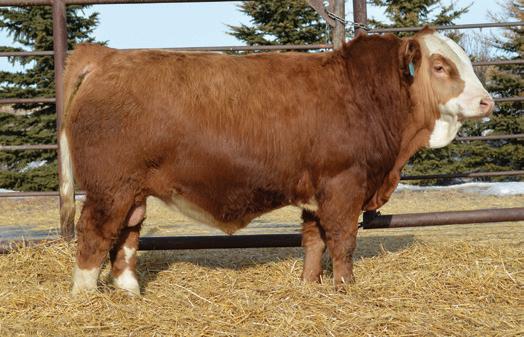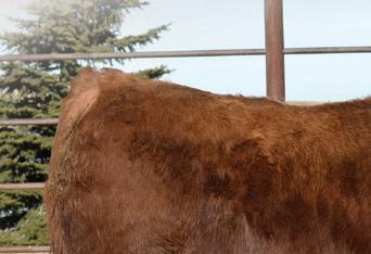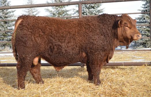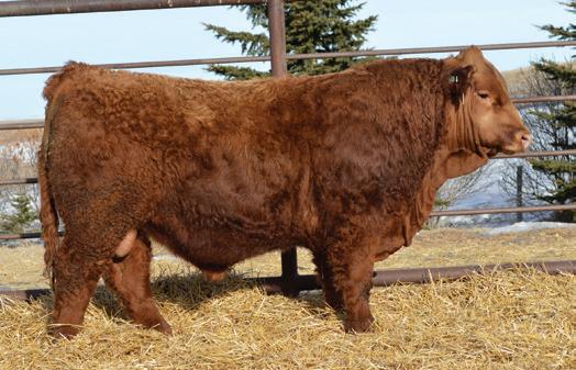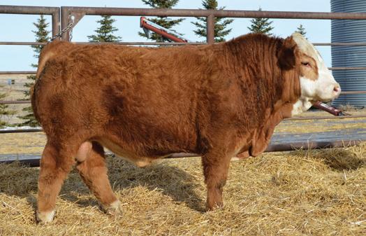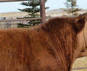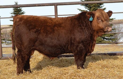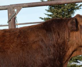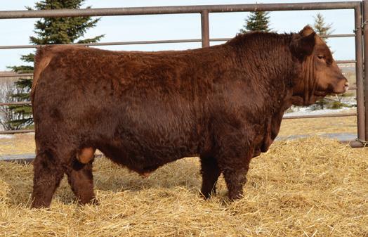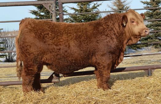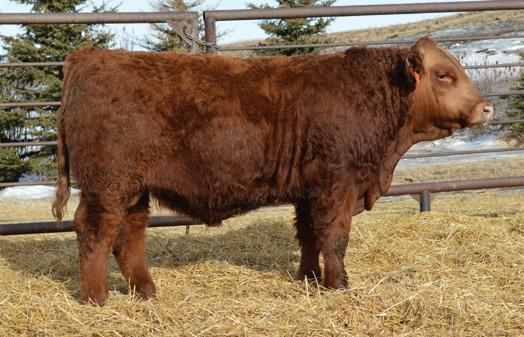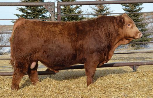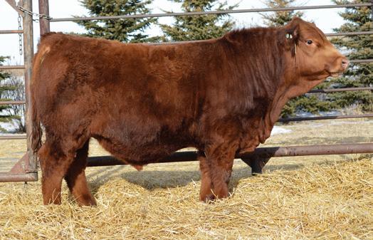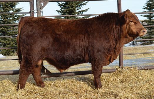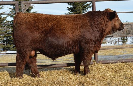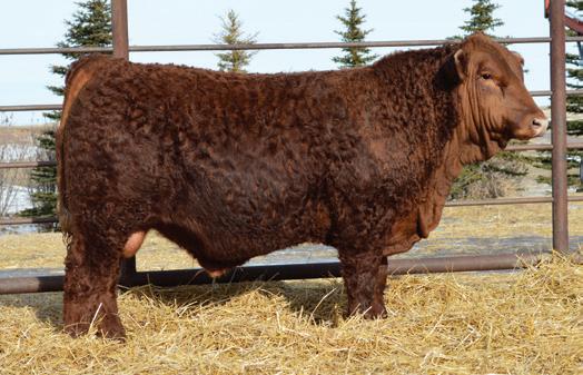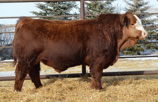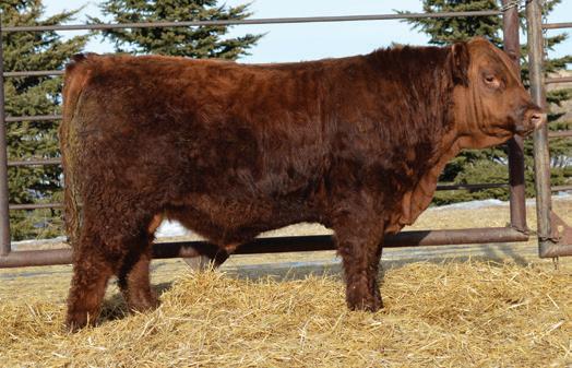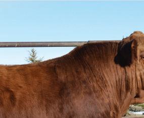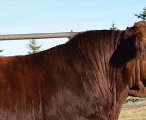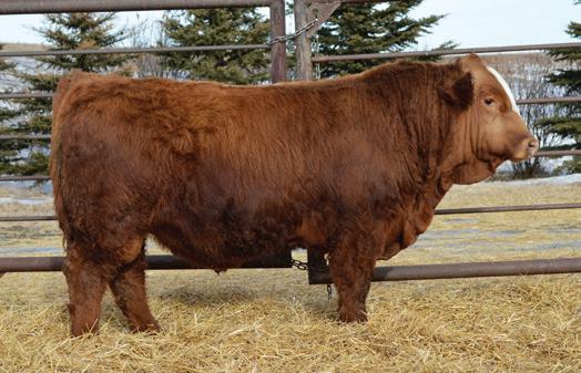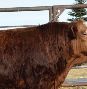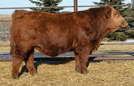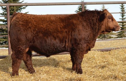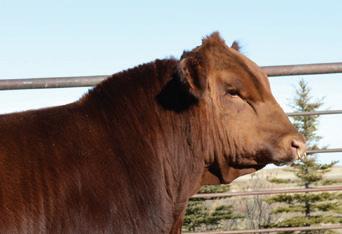We feel we have put together a very useful and high quality set of bulls for your appraisal. We have everything from power bulls to some easier calving options, reds, blacks, and eckvieh. Last fall we took three red bulls out as part of our show string. ey stood strong in some very competitive classes at both Farm Fair and Agribition. As a group they were named Reserve Senior Champion pen at the Medicine Hat Pen Show. On the black side we may be down in numbers to prior years but not to sacri ce quality as it was a heifer kind of year. e eck bulls are once again a very strong set as well.