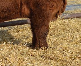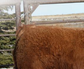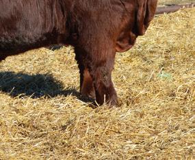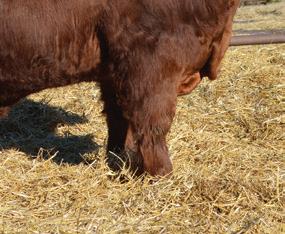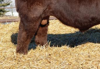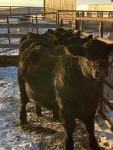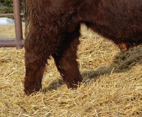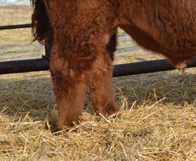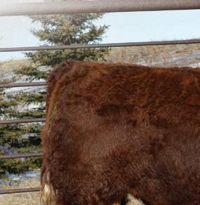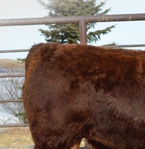 e bulls have been developed on the same program as years past. If it isn’t broken why x it? ey always have a feeder full of alfalfa/brome hay and are pail fed a 14% textured ration along with brown oats in the “feed pen”. ey are housed in a large hilly pen that provides lots of exercise and our feeding method provides a great deal of human interaction. No feet have been trimmed. As always it is a pleasure to work with Jessica Hextall from Trouw Nutrition. Mineral for our entire herd comes from Bulls Eye Feeds under the recommendations of Matt Criddle. As in the past the bulls have been developed on the Zoetis herd health program, have received Ivomec and Clean Up II.