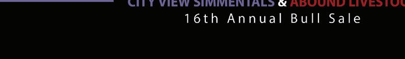 Welcome to the 16th Annual City View Simmentals and Abound Livestock Bull Sale, featuring guest consigner Gold Bar Livestock. ese three operations share a common goal, raising performance-oriented cattle with strong maternal traits, bred to thrive in the real-world environment they were raised in. ese bulls are developed to last and are supported by easy doing maternal cowherds with signi cant emphasis put on feet and udders.