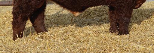 e bulls have been developed on a textured 14% ration from Trouw and the best hay we can produce. ey spend their time in a 20 acre pasture with steep banks and we space the hay feeders to make them walk as much as possible so they are hard muscled, t and ready to go to work in all conditions. anks to Jessica Hextall for making sure we are always looked a er nutrition wise.