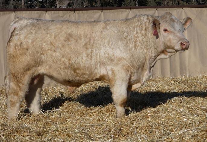 An embryo full sib to this bull was in our Reserve Champion Pair of Heifer Calves in the Divine Diva’s show at Farmfair, where she was also Champion Senior Heifer Calf. At Olds Fall Classic, she was Reserve Champion in the Purebred Heifer Jackpot. She then sold in Bohrson’s first White Lights Sale to Oakstone Land and Cattle. The mother of this bull, 3F, is an attractive, yet powerfully made female with lots of middle. 535N’s sire, Historic, has commanded a lot of attention in the Charolais breed and his calves have lots of early growth.