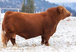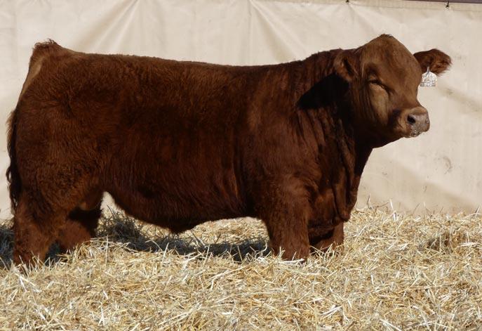 This bull is made right and so good in his lines. He is a little later maturing. His dam is a solid red, bigger framed cow.