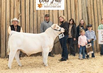 Here is a game changer. This bull has an awesome profile and pedigree. LT Global was the High Seller of the 2024 Lindskov LT Sale. We were really excited to get in on LT Global semen with a great group of people. Gilmour had a very successful fall showing, collecting a banner at each show he went to. He was Champion Junior bull and then Reserve Champion Charolais Bull at Olds Fall Classic, as well as Reserve Junior Bull Calf at both Farmfair and Agribition. The best part of this bull just may be his 11-yearold dam. If you are serious about a purebred bull, you truly need to come look at her feet and udder. We think he would calve fine on well-developed and managed heifers and plan to use him on some of our heifers.