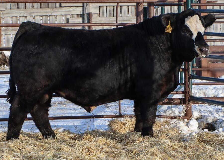 Extra frame and overall mass on this LW son. Heavy hair coat to help in these prairie winters and excellent testicular development from an extremely early stage.