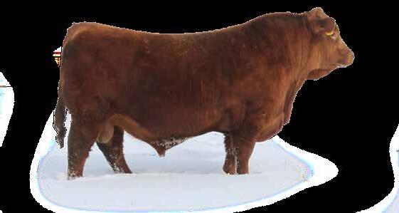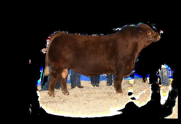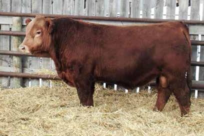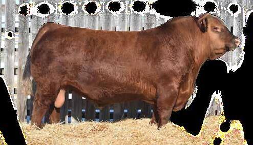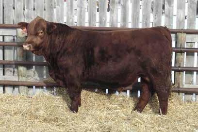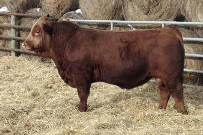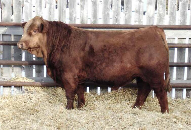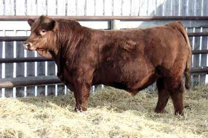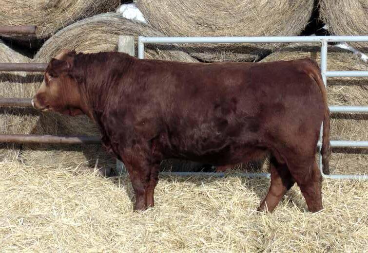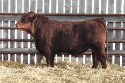 • Long sided, dark red and the heaviest haired bull in the pen.