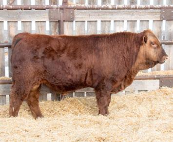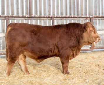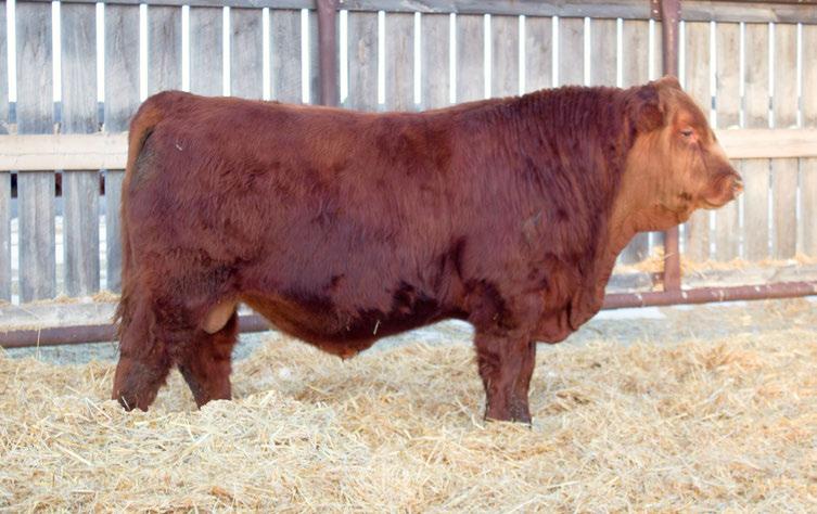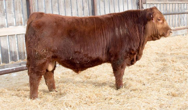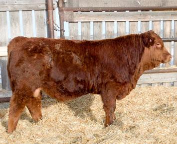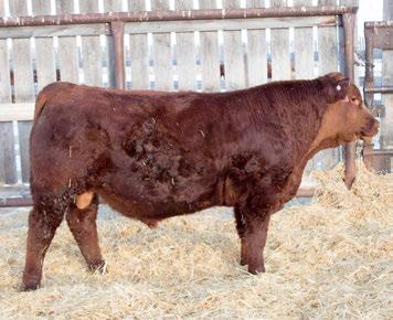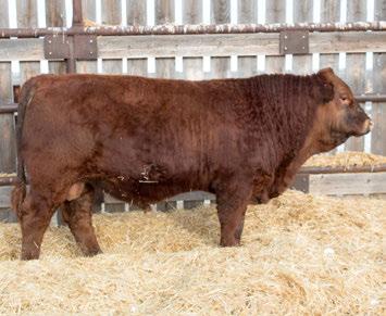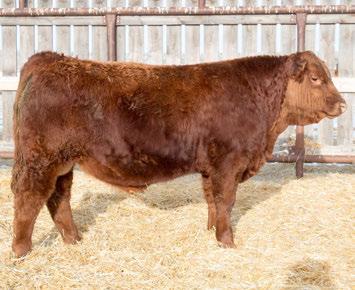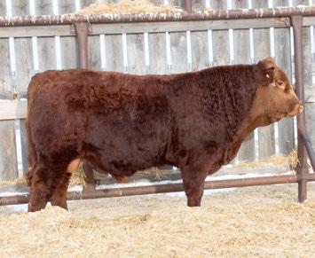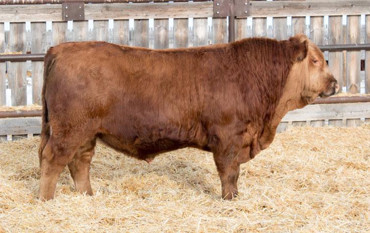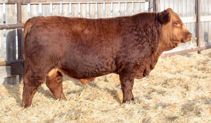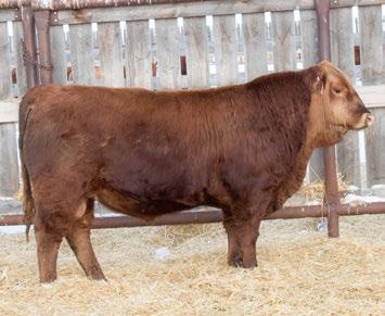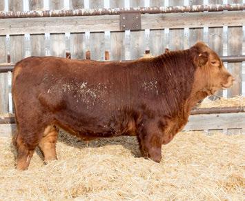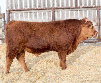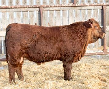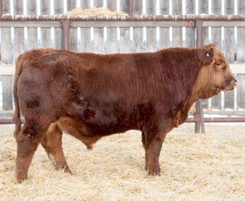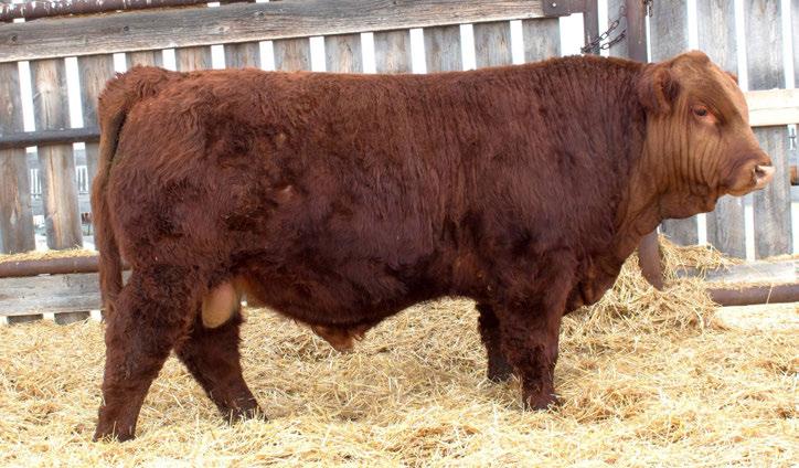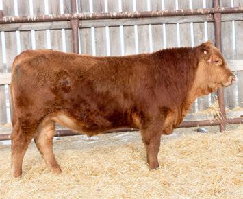 If you looking to add a few pounds to your weaning weights, you are going to want to check out this guy. Clean fronted, with a big middle and extra extension in this front end. Well put together, easy fleshing bull. Lots of long dark red hair and a petite head .