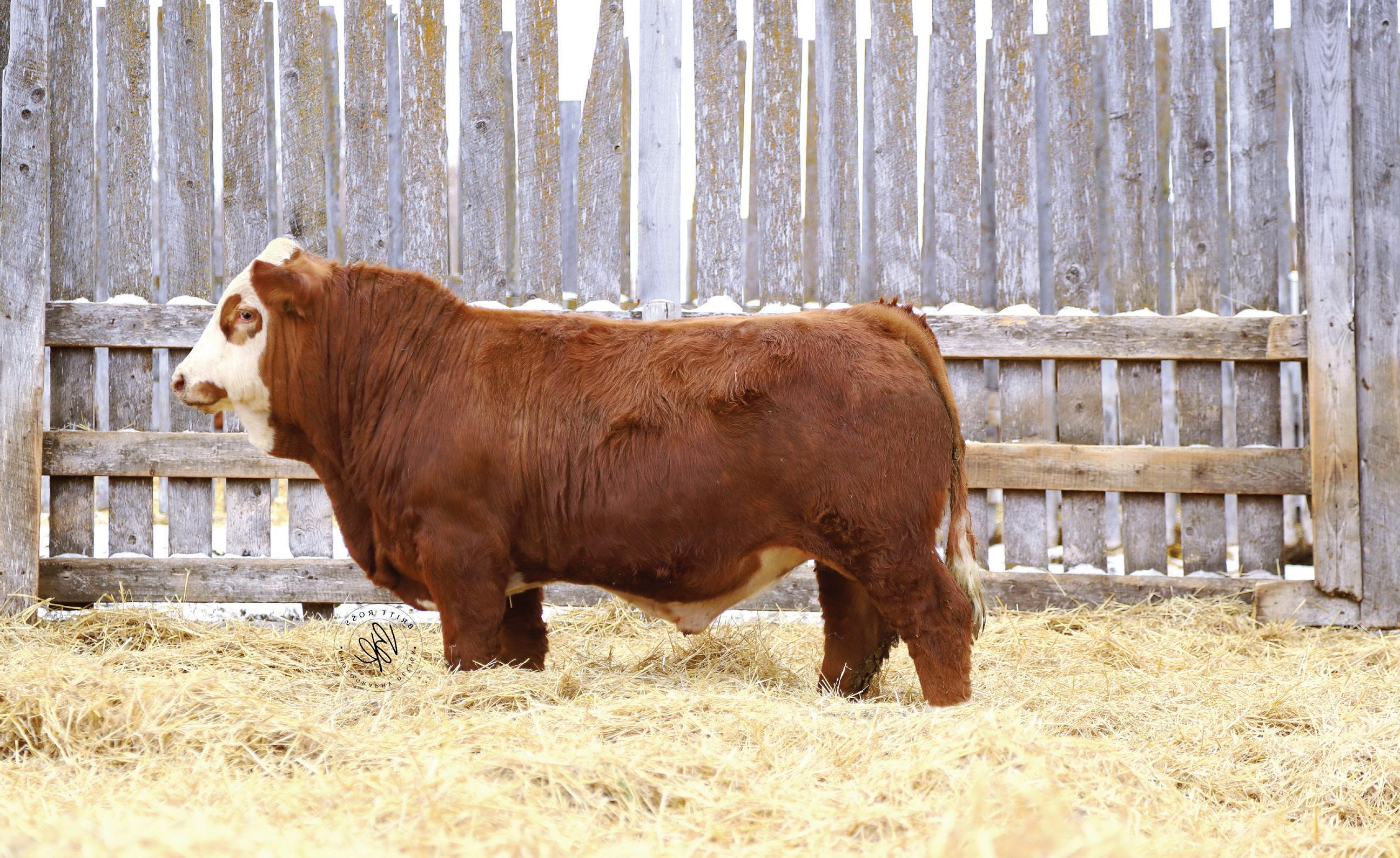 •Long bodied, smooth shouldered bull with a thick quarter.