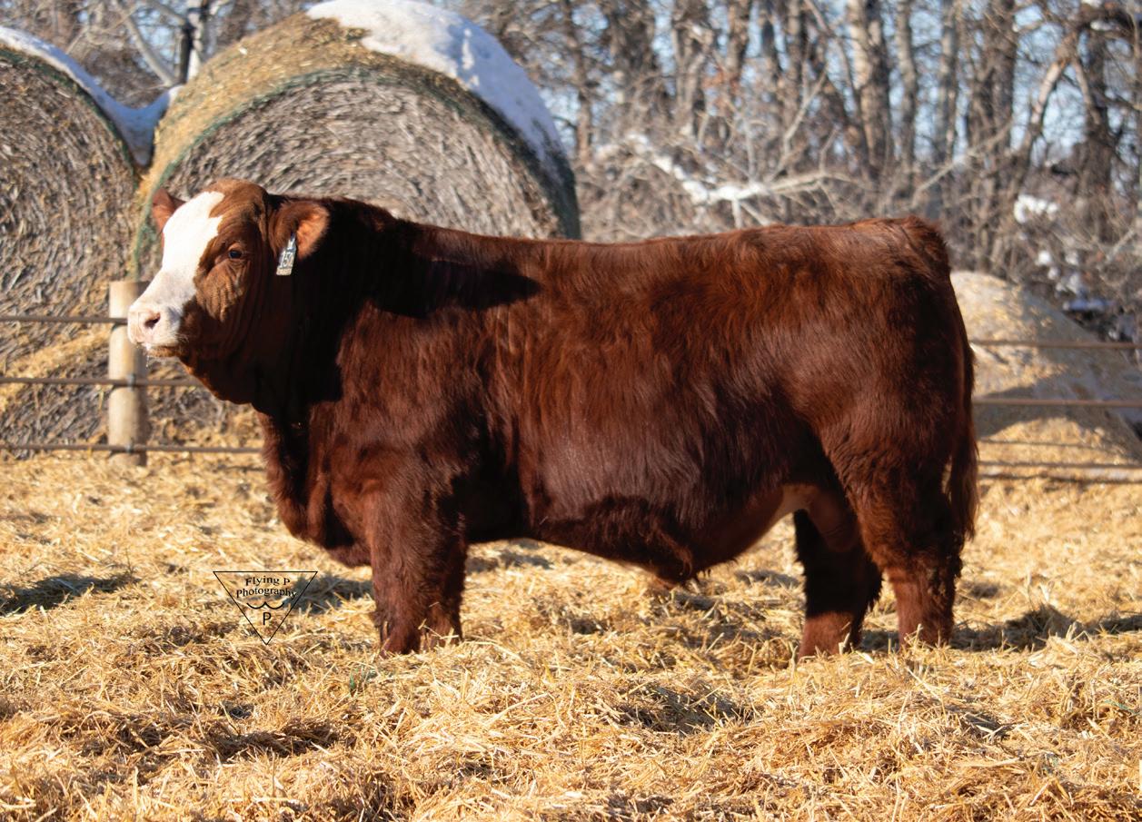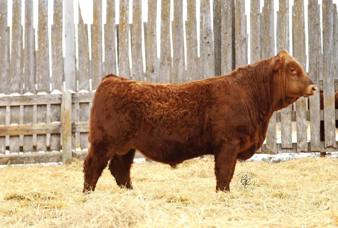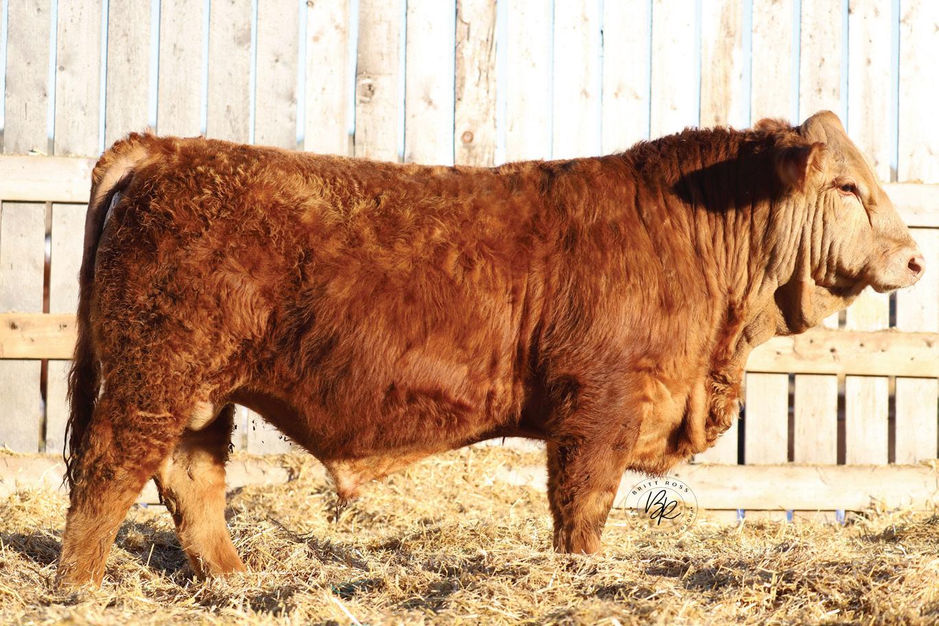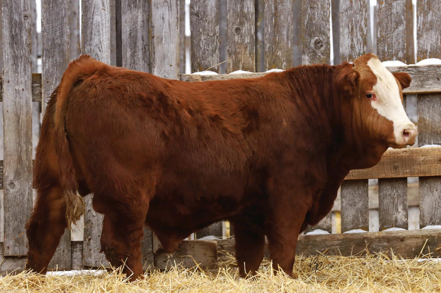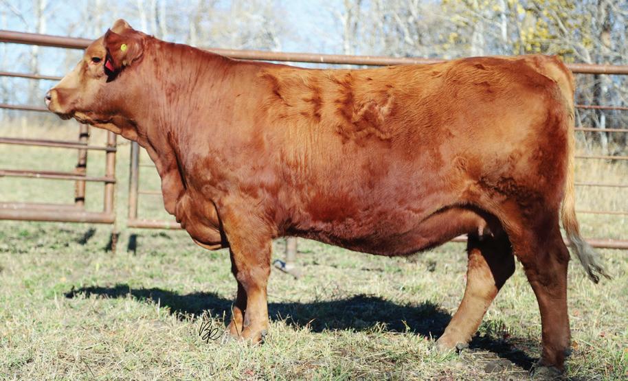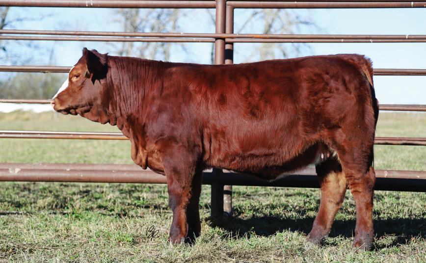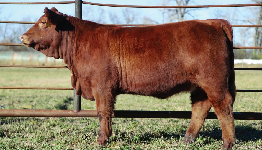 •Loose hided bull that moves out well with eye appeal and a deep red hair coat.