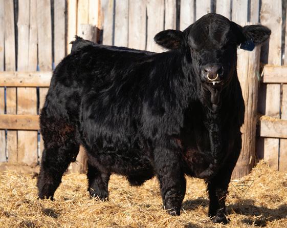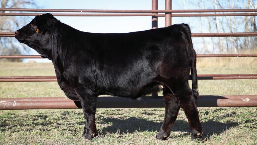 •Hard to fault this polled bull; bold in the forerib, depth of body throughout, and thick butted.