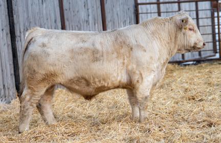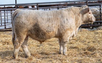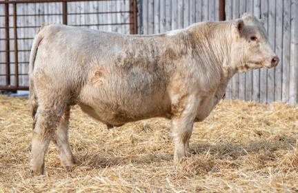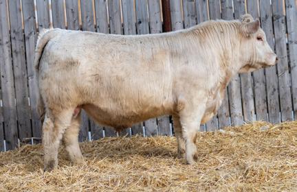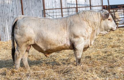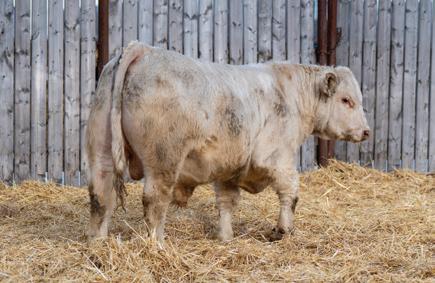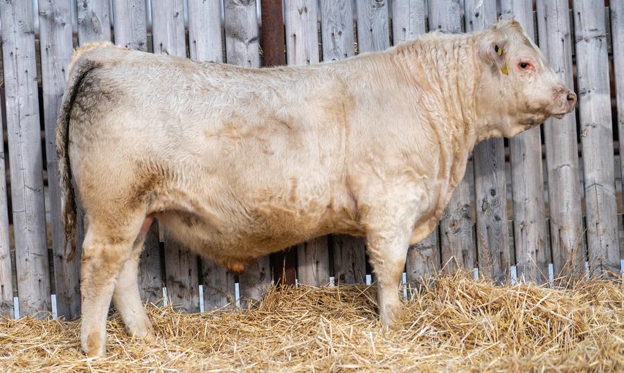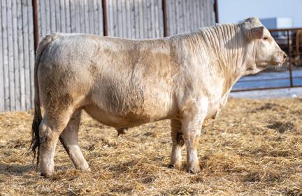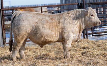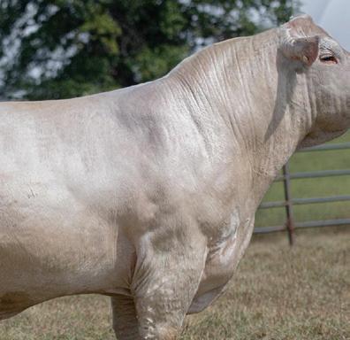While I was touring the massive Lindskov Charolais herd in South Dakota in the summer of 2023 I noticed Senator and his dam none other than the famous LT Athena 1247 cow. Who is also the mother of LT A nity. At 12 years of age she was still one of the most impressive cows in the herd. Her udder was impeccable, and her feet were still amazing. While she was starting to show her age, she was still powerful and impressive. At that time I knew I was going to try my best to purchase Senator. Senator is sired by LT Governor who is renowned for his power and performance. is combination is proving itself to be a perfect mix of femininity and power. We look forward to many years of Senators in uence.