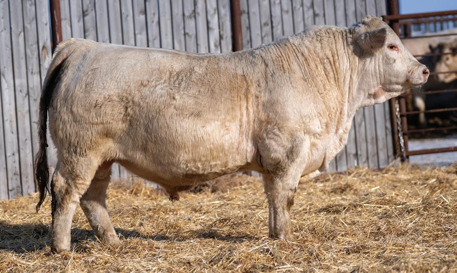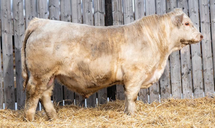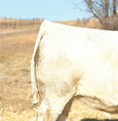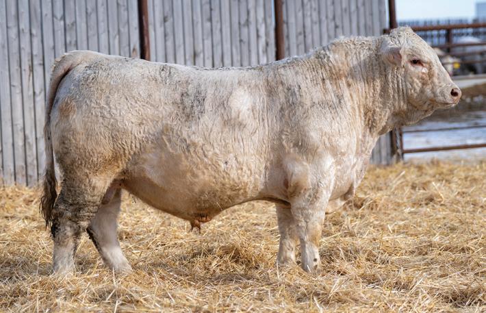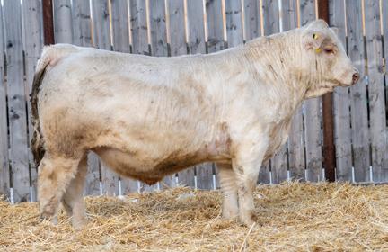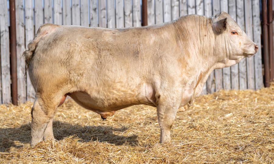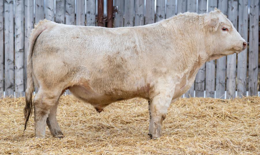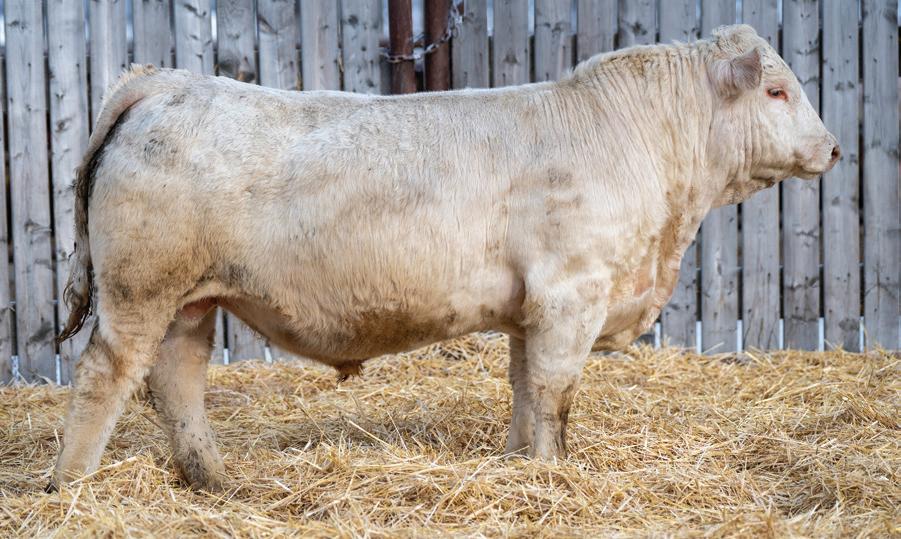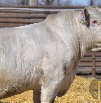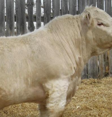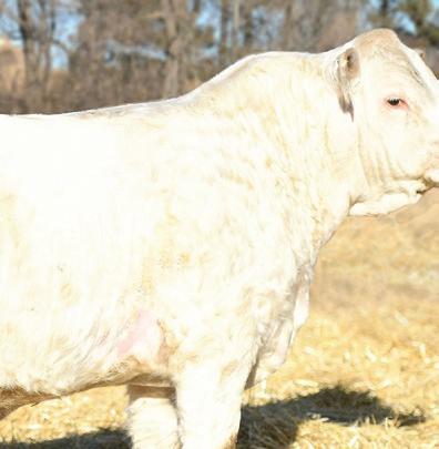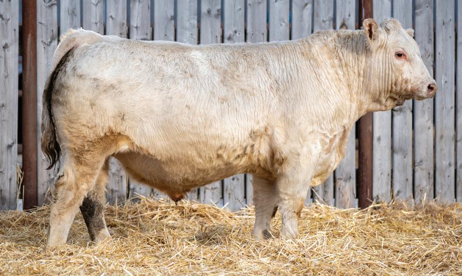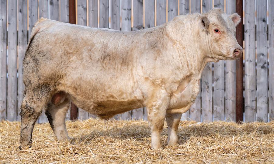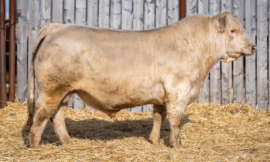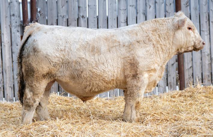 Our herd has changed over the years and we’ve made a conscious e ort to lower birth weight and increase calving ease without sacri cing weaning weights, overall growth and structure. Using a Charolais bull is not a fad and the market has always demanded Charolais genetics and will so for many years.