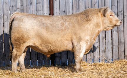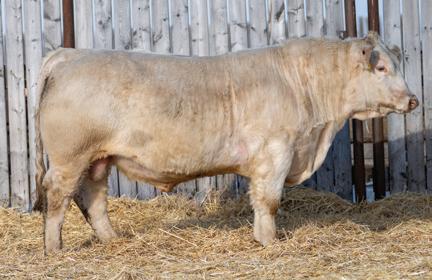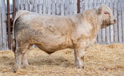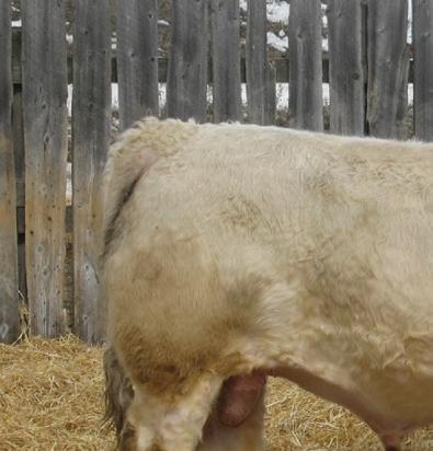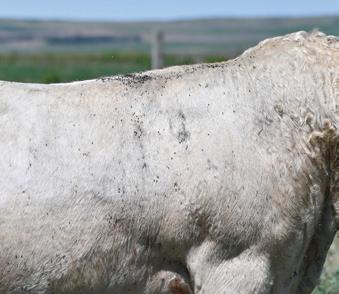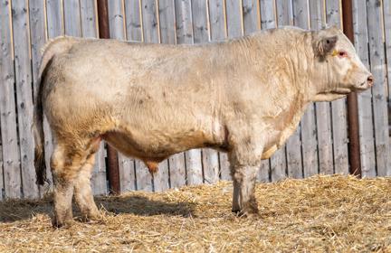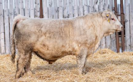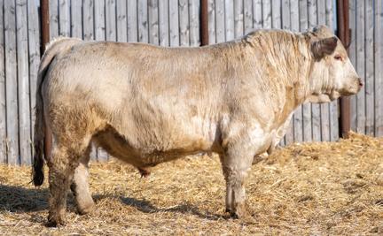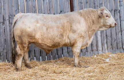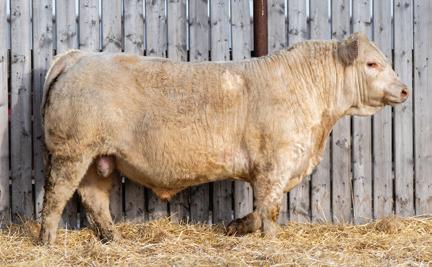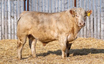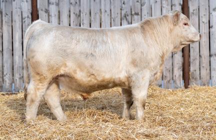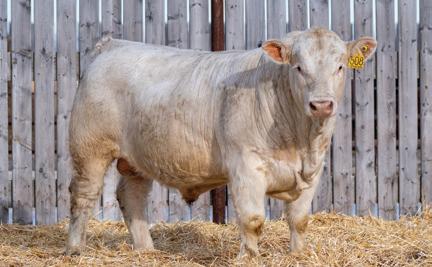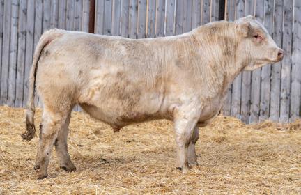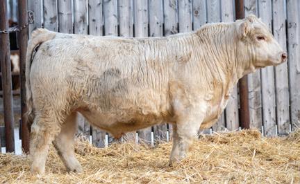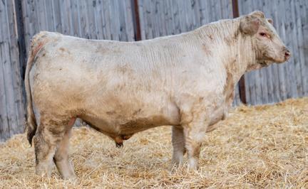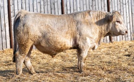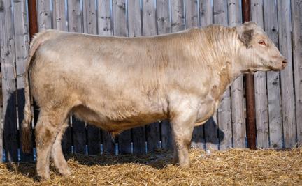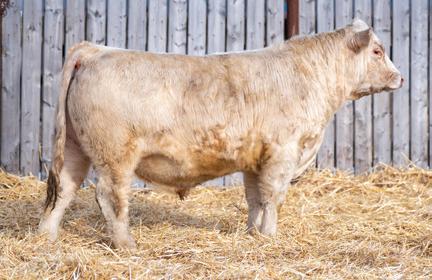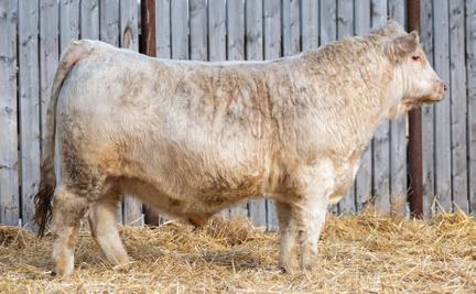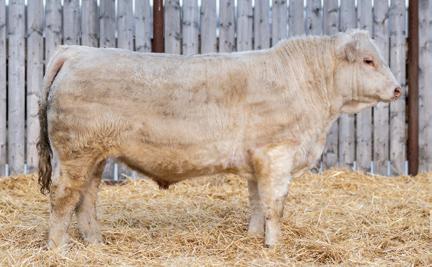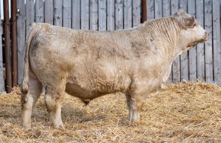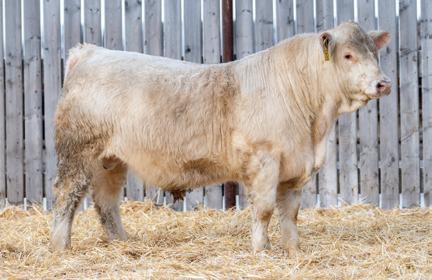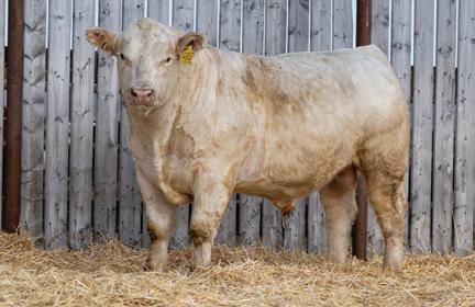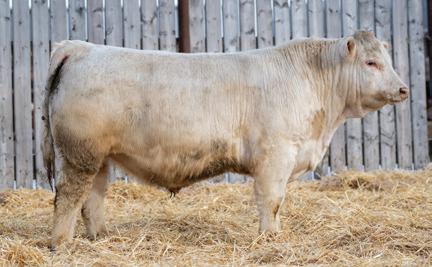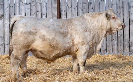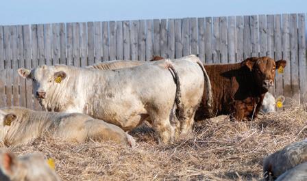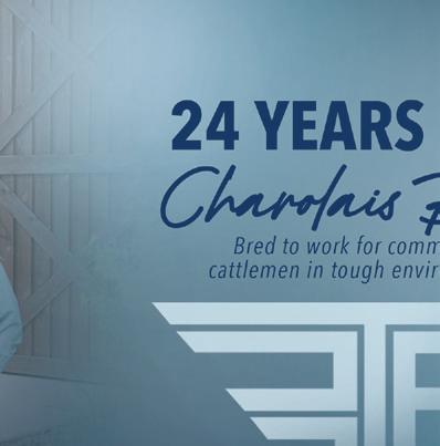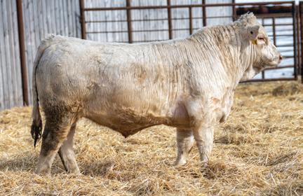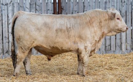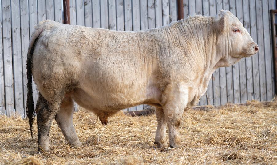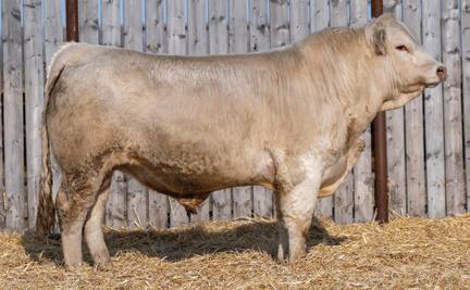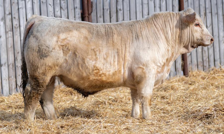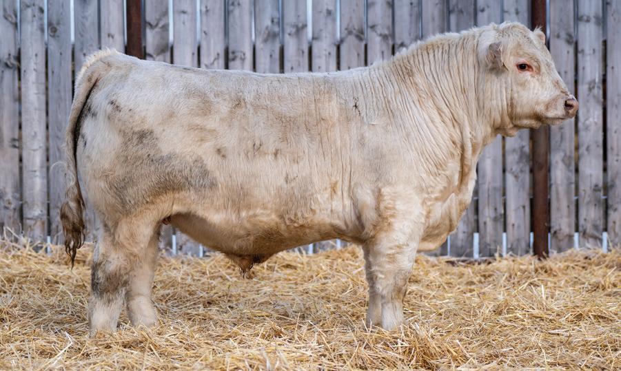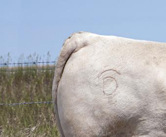 Our herd has changed over the years and we’ve made a conscious e ort to lower birth weight and increase calving ease without sacri cing weaning weights, overall growth and structure. Using a Charolais bull is not a fad and the market has always demanded Charolais genetics and will so for many years.