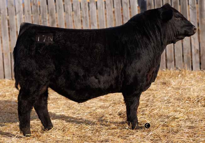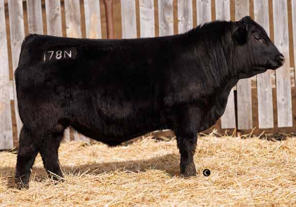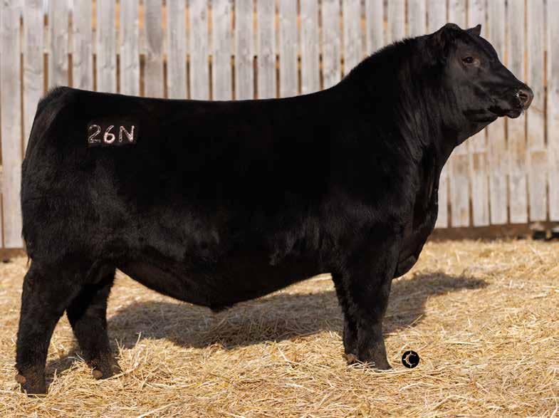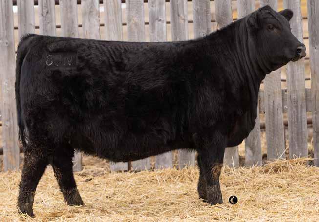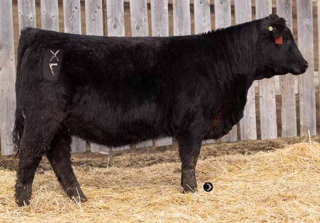 We purchased Alcatraz from Hamilton Farms in 2019 at a Canadian record for $200,000 for ½ interest with our friends at Bar-E-L Angus. Alcatraz checks all the boxes. He is so sound with a perfect foot, powerful, lots of muscle shape, hair and a very docile temperament. He has also become our go to heifer bull that won’t sacrifice pounds in the fall! His daughters are raising some of our very best calves which has earned him his final mark of approval. Alcatraz was sold this past fall to Lindskov’s LT Ranch in South Dakota so sons will be limited in the future, collect them while you can, you’ll be happy you did!