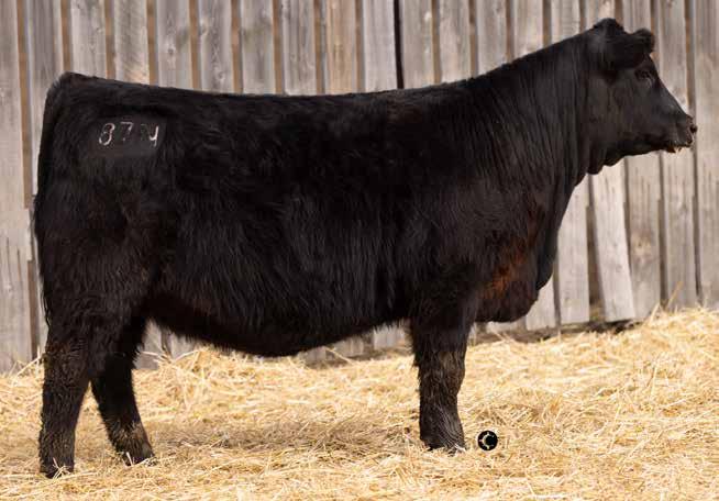 Look no further for a performance-stacked pedigree you can take to the bank. Clean, stylish, and a proven momma, this stellar grandson will produce well-put-together replacement heifers. Mudder is the maternal brother of our record-high-selling bull, Kingpin 813L, to Peno’s for $16,000 in 2024. Maternal Granddam Ruby 1E is a beautiful uddered, broody cow that always gets things done for us. 63N’s dam is the maternal sister to our lead sale heifer last year, 937M to Logan Young. This is our only offering out of 820L this year, but there are many more on the way.