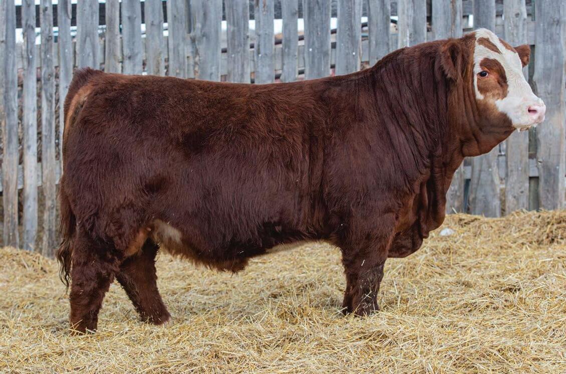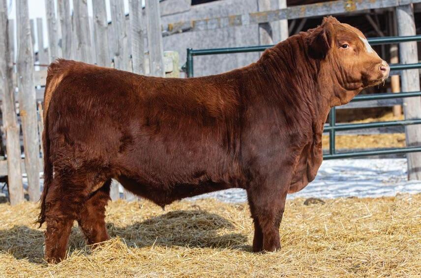• Red bull out of a moderate framed cow. Full brother sold in the sale in 2024.