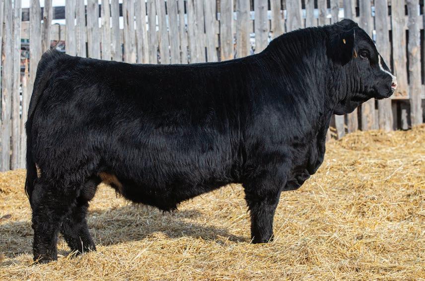 • Strip faced bull that is long bodied and massive bone, great hair & an awesome disposition.