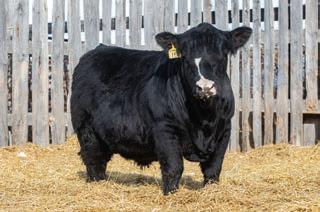 • 548 cow is a moderate framed cow with lots of volume. She is black with a white tick on her head.