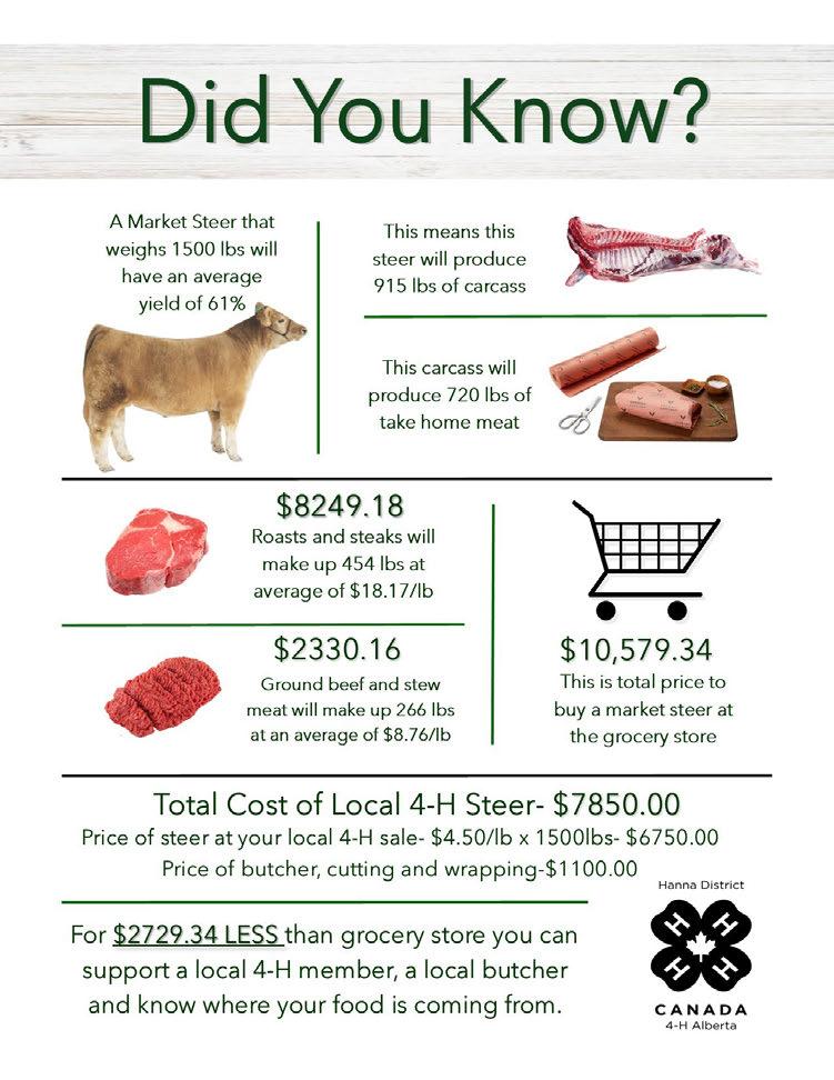 HUGE Thank You to all who donated to our 2024 Charity Steer! The Hanna District raised $34,100 for Ronald McDonald House Charities Alberta!! We couldn’t have done it without our sponsors Adam, Brandi, Winston, Emmie & Jade Smith– Steer Donation, Travis & Nichole Foot– Animal Caretakers and Steven & Sandra Rude– Feed Donation