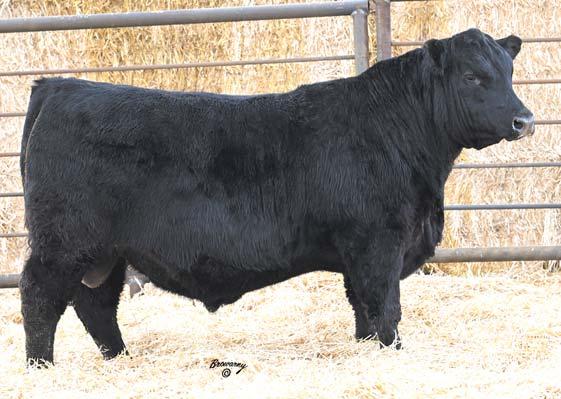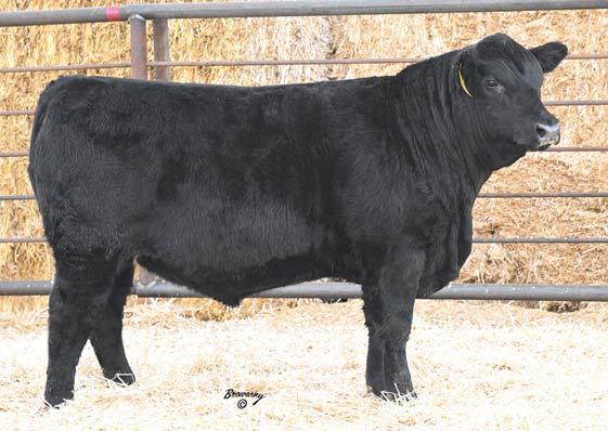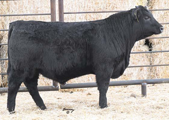 Recommended for cows. This bull was a Hoss all summer long! Big time cow bull here with added length and bone here. Will sire cattle that will wean and feed. Dam is a powerful Spur daughter that puts the meat into them.