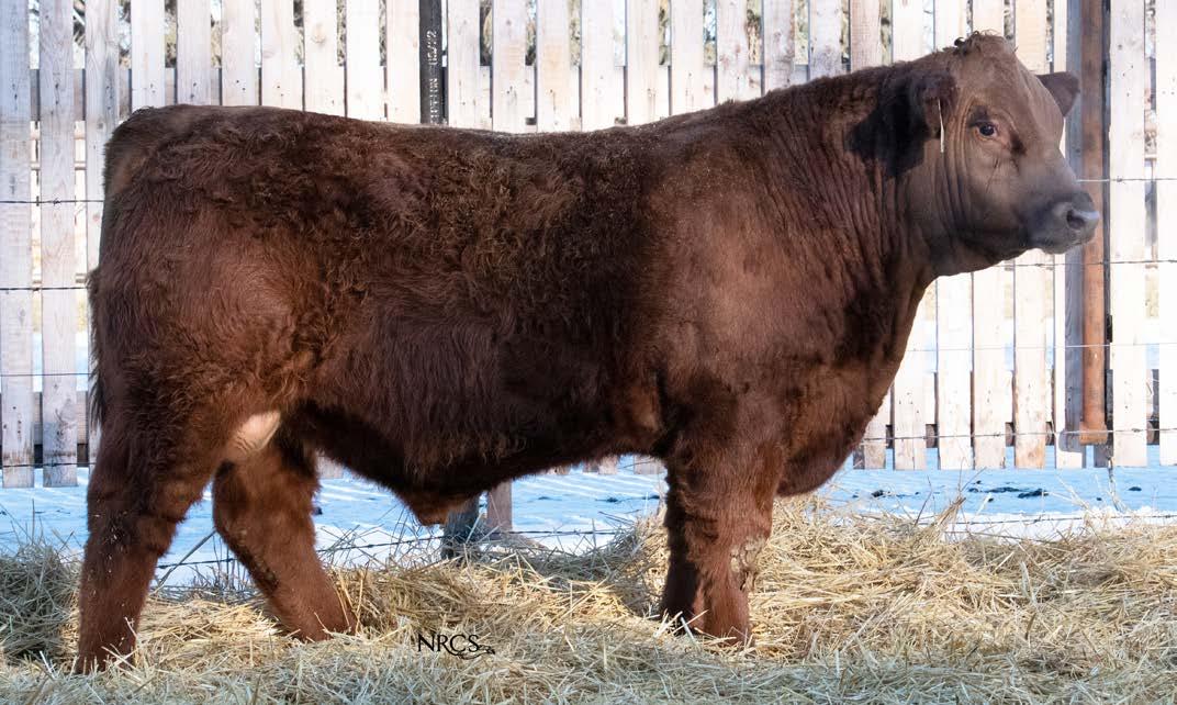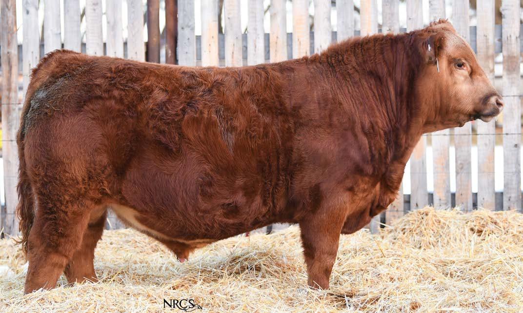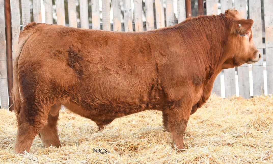 A little smaller frame bull that packs a lot of punch in his make up. Natural thickness carried through rom top line to quarter.