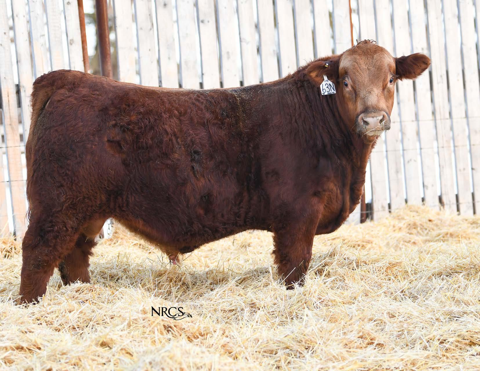 Another freight train! That can probably be attributed to the fact that he shares the same Maternal granddam as NINA 105N (lot 27) Being a train also comes with birthweight, but with that extra rib you get the extra pounds. He is built very correct and has a nicely blended shoulder and neck.