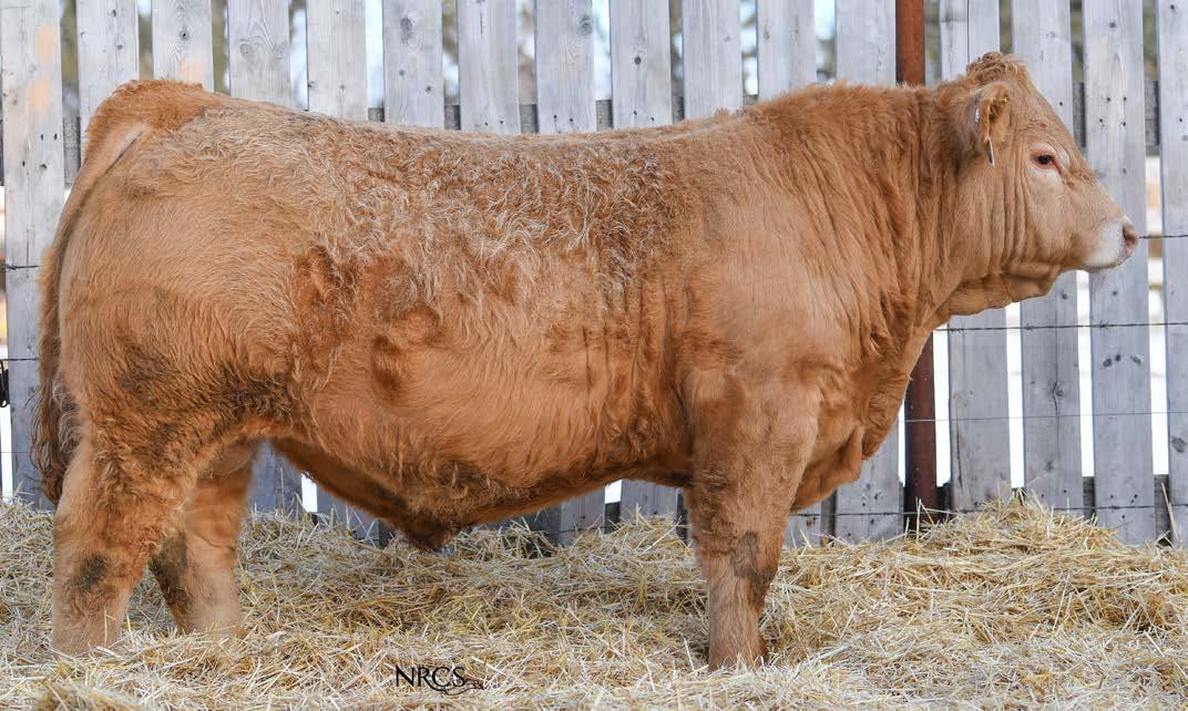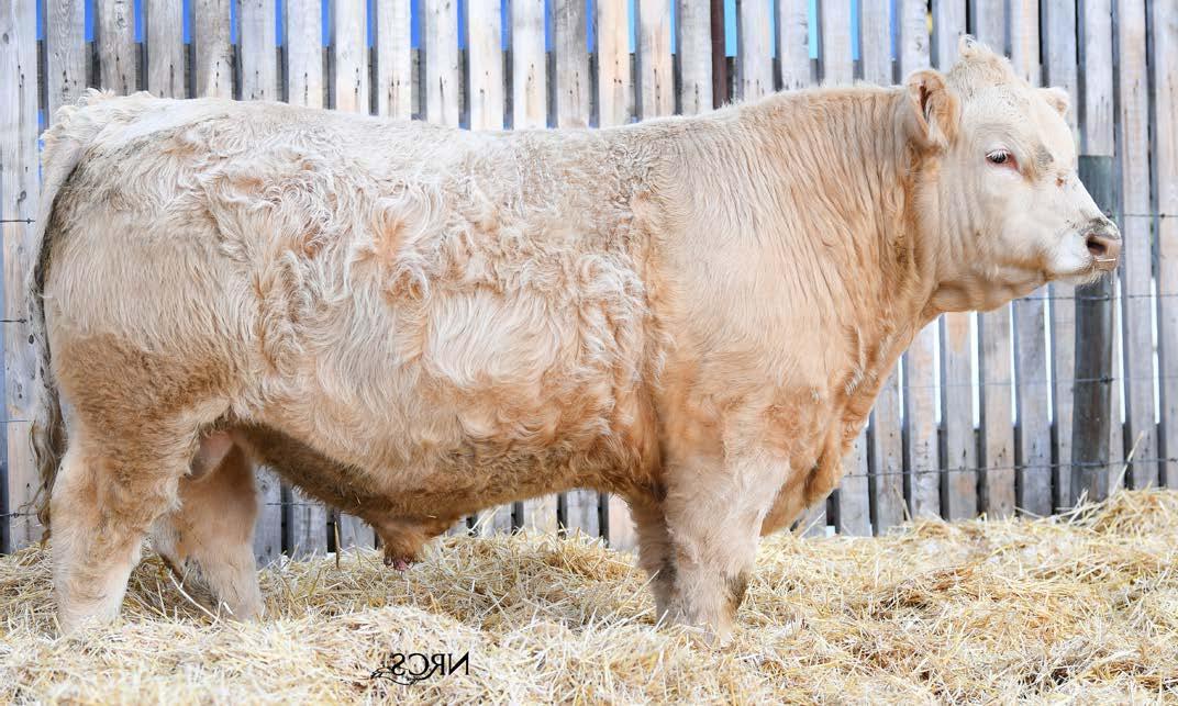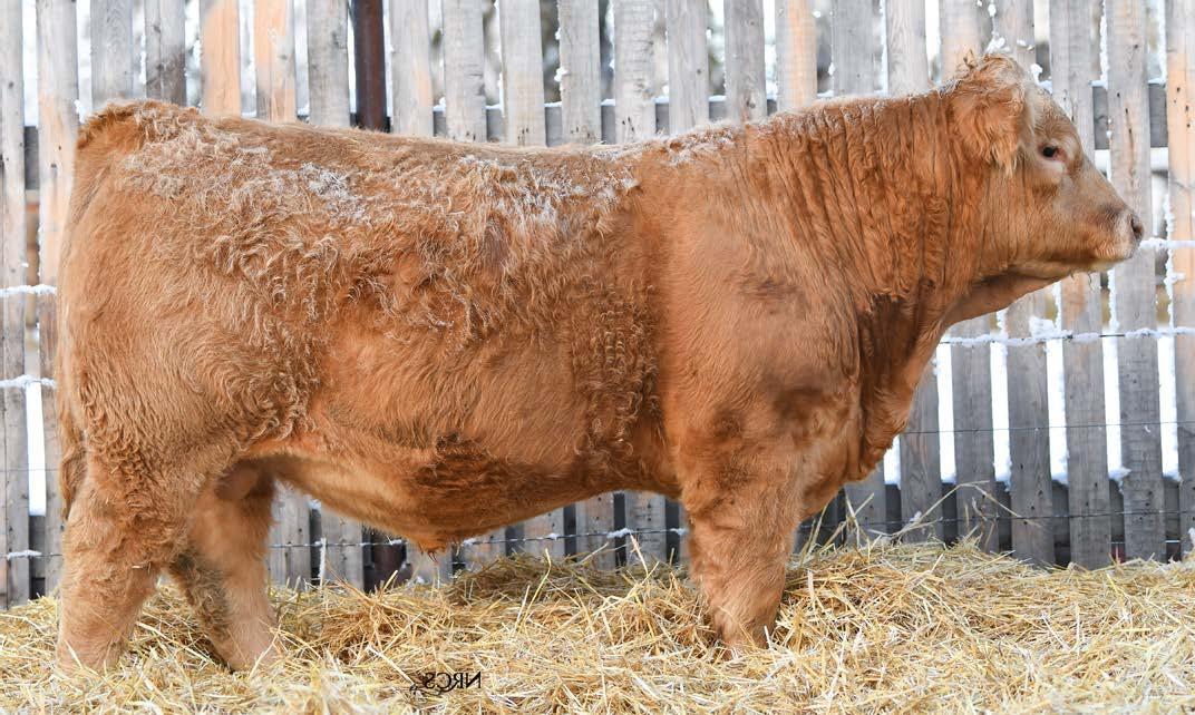 A tan Custom calf with loads of hair and guts. A bull that when you get behind him you can admire for his spring of rib and muscle shape.