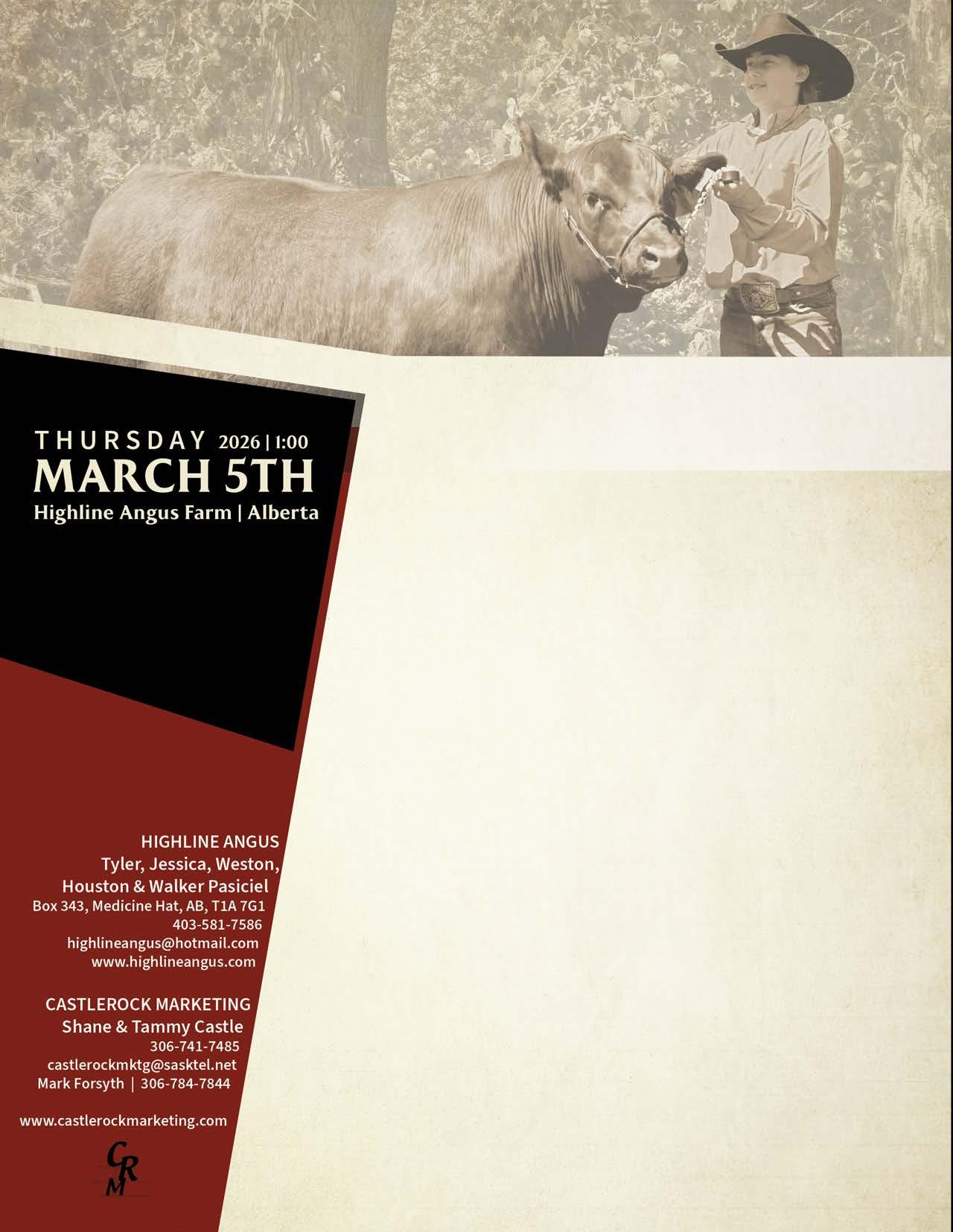 Welcome to the 12th annual Highline Angus bull sale. As always, we would like to sincerely thank all of our past customers and look forward to working with new ones.