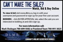 ONLINE LIVE AUCTION: The sale will be broadcast on DLMS. If you plan to use this service, please be sure to register early. IF YOU HAVE ANY DIFFICULTIES DURING THE SALE AND WOULD STILL LIKE TO BID, PLEASE CALL PAULA 306-561-7126 OR JARED 306-867-7919 OR TEXT LAYNE 306-561-7147.