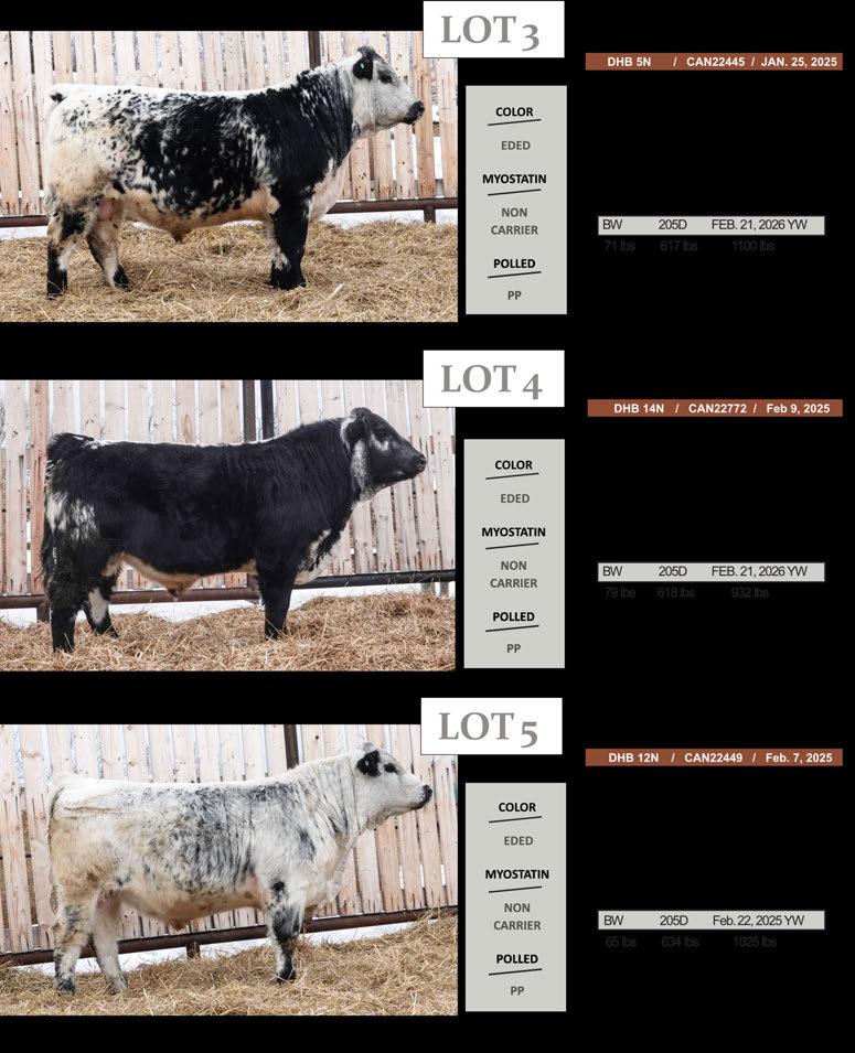 If you’re looking for longevity combined with performance, than here is the combination that puts it all together. The dam of 7N had her 12th calf (11th bull calf) Jan 25th of this year, she still has a perfect foot and is one of the �irst cows to breed back every year. Being the only Leviathan son to sell in 2025 Nitty Gritty is one of a kind!