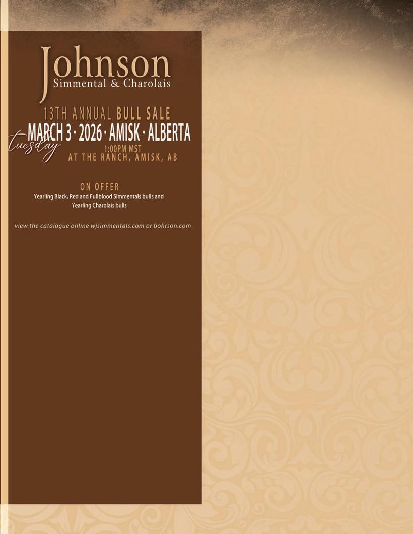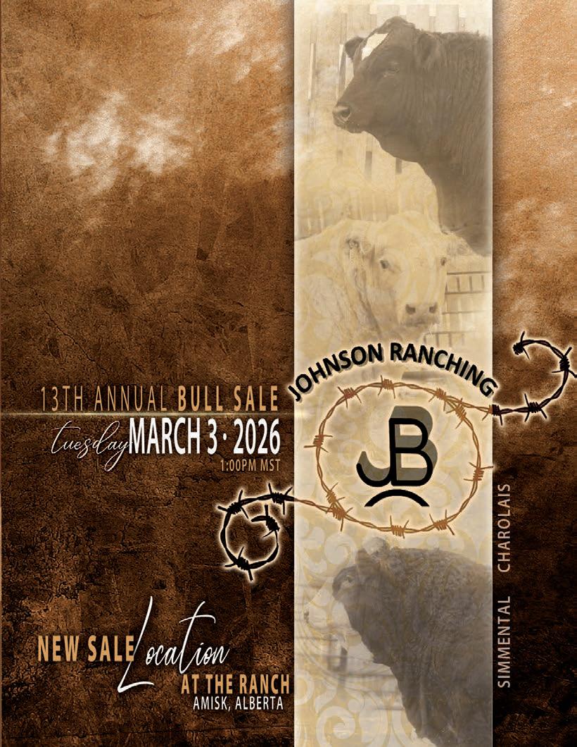 Johnson Ranching is a family ran operation providing the industry with some of the best Charolais and Simmental genetics you will find across North America. They annually assemble a uniform set of bulls in 4 different breeding lines with red, black and fullblood Simmental along with the Charolais. Year after year, the impressive lineup of repeat customers from outstanding operations pack the sale building to purchase Johnson Ranching genetics, a true testament to the people and their product. This year for the first time, we are excited to welcome you to the ranch, near Amisk, AB for the 2026 Bull Sale!!