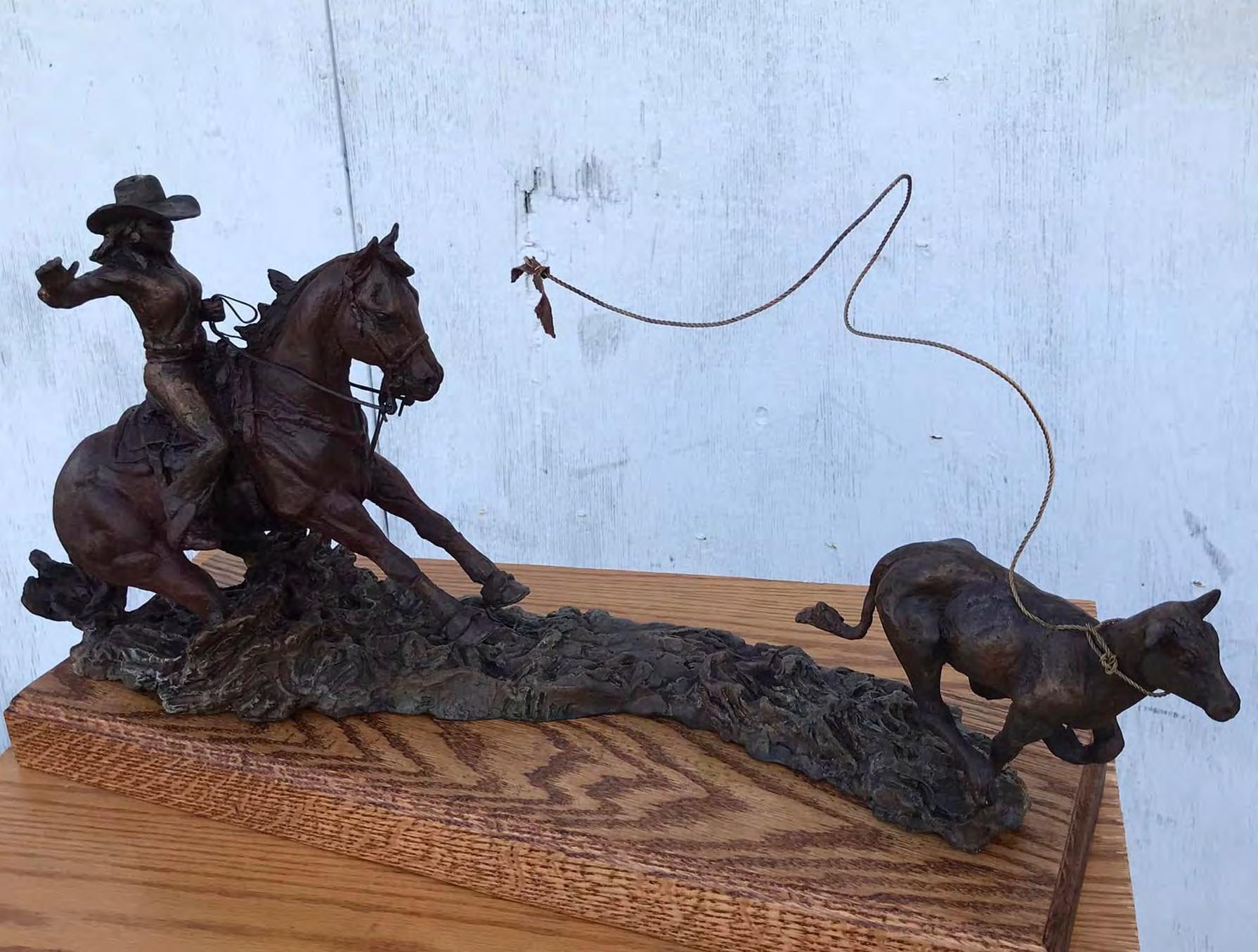 In 2018, he entered the Calgary Stampede artist competition - and won. His bronze tie-down roping and steer wrestling sculptures were chosen, an honor that came with a five-year contract.