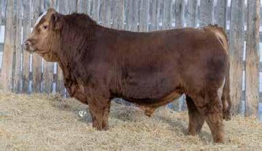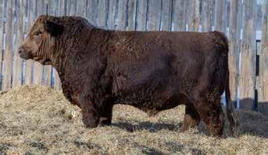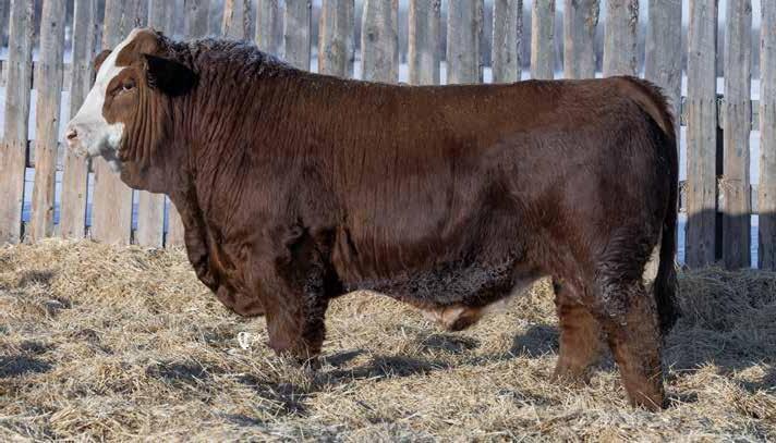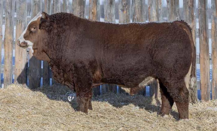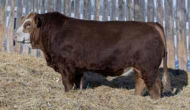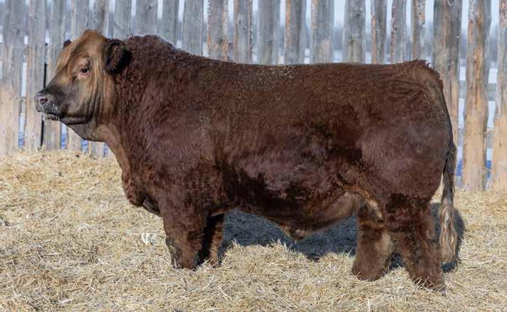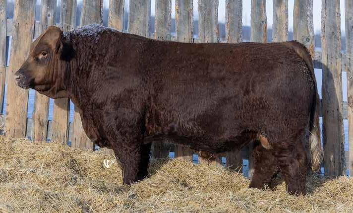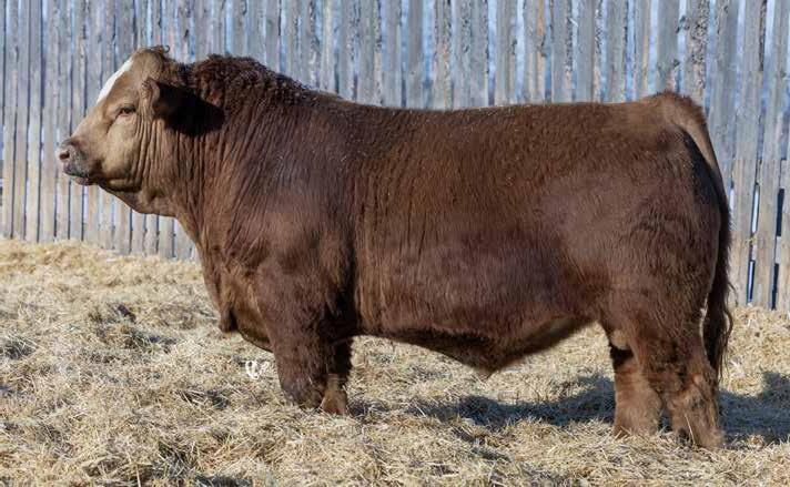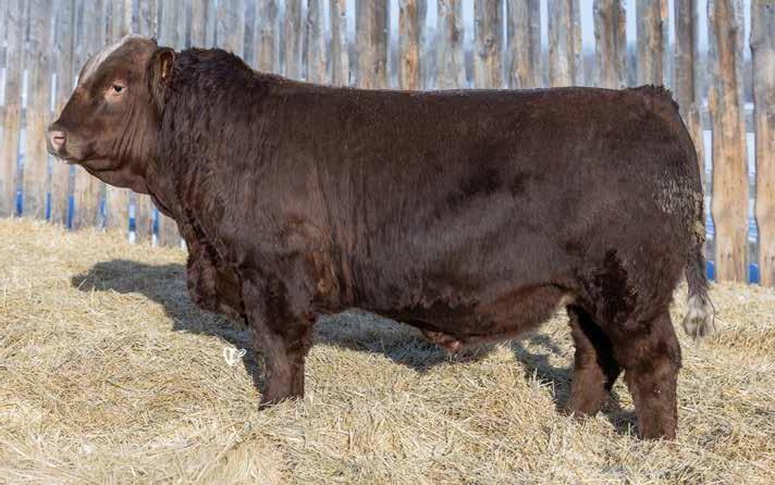 -A dark red heavy pigmented calf from a female we purchased from Oakview Simmentals in Manitoba -A calving ease bull with all the bells and whistles this exciting bull calf could really shine in a group of sale heifers
