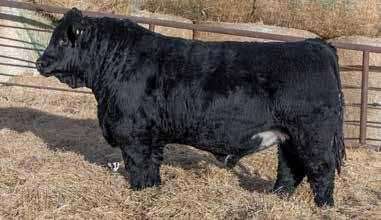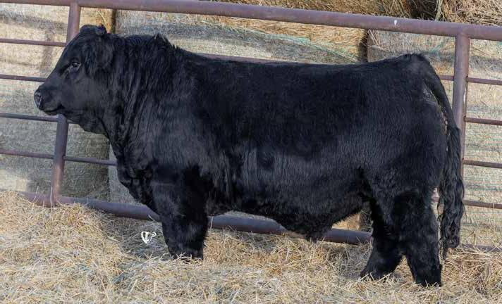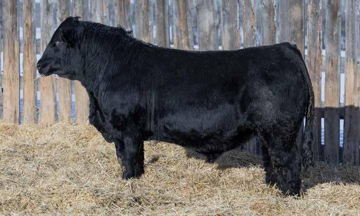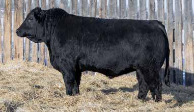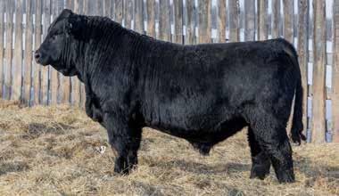 -Don’t overlook this horned black bull, he has longevity bred into him from his 13-year-old dam Brad purchased from Bert NR Simmentals in Manitoba -Deep sided and sweeps with ease from front to back with rib shape, a wide top and loads of muscle