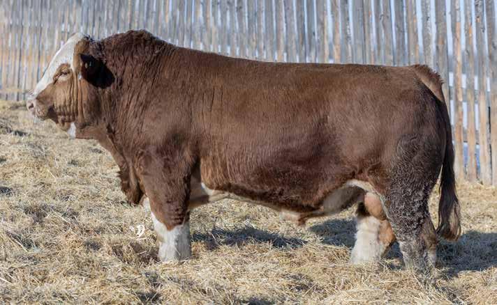 -A maternal brother to the female we sold Blue Zone Livestock in Manitoba at the World Simmental Sale -The Duke X Nitro pairing is perfection -This exciting young bull is built right, good footed and going mature into a big statured well rounded cow