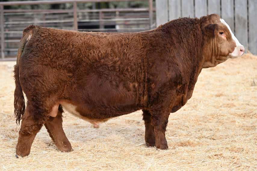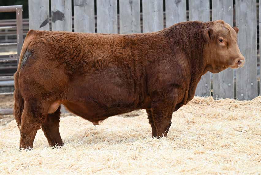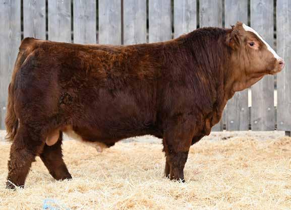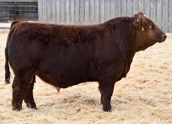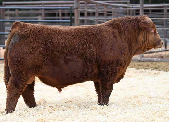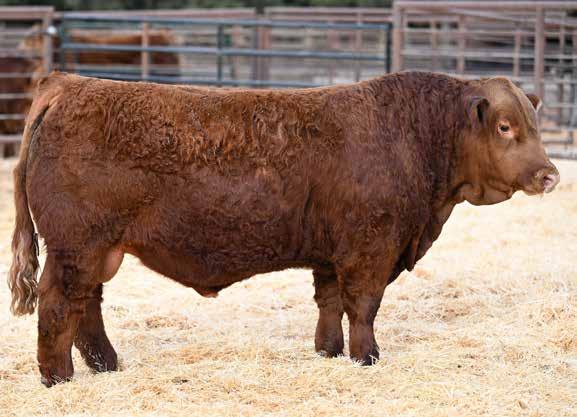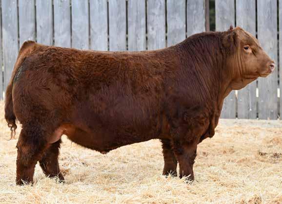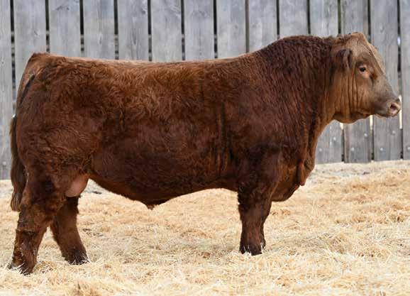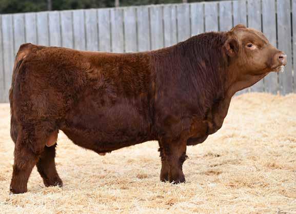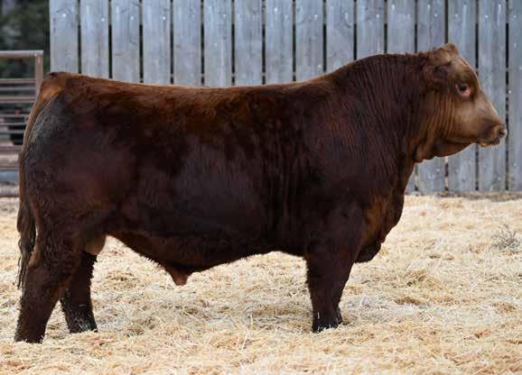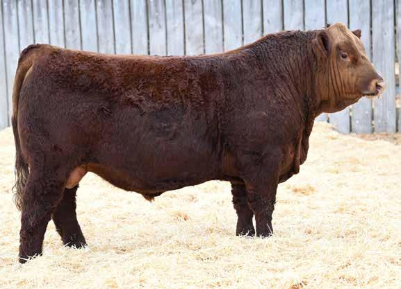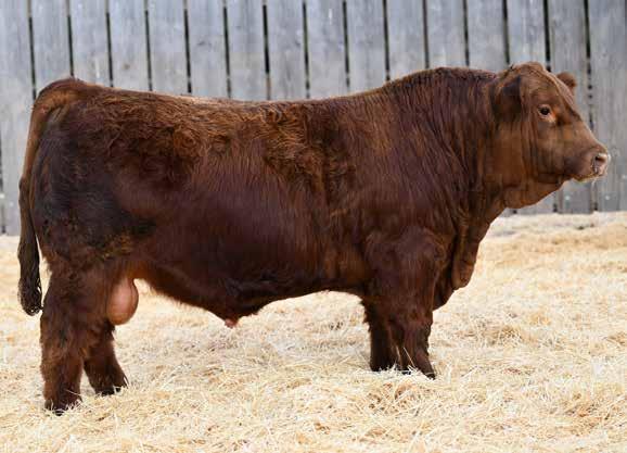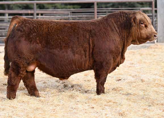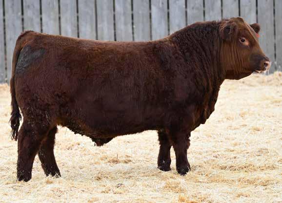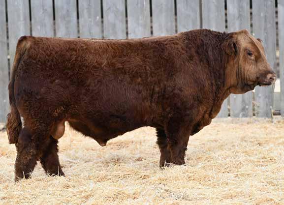 We haven’t sold many Red Angus bulls in the past but do plan on increasing our numbers. KT Resource 5326 is a well-built, dark red, nice headed, wellbalanced bull. His Dam Red U2 Hidee Ho 400F came from the historic U2 dispersal and is a tank of a cow with a beautiful udder. A bull that should make some high-end replacement females.