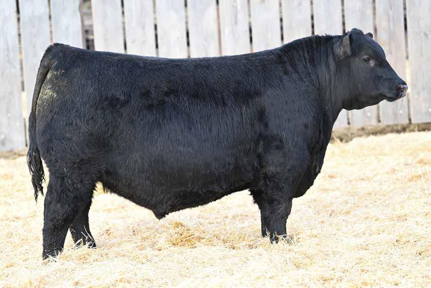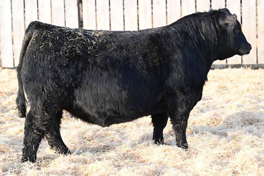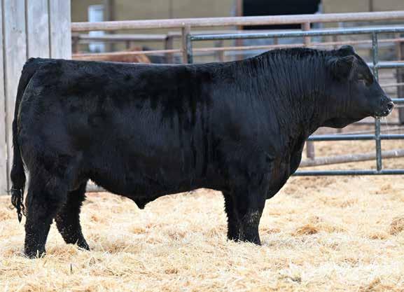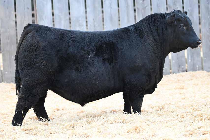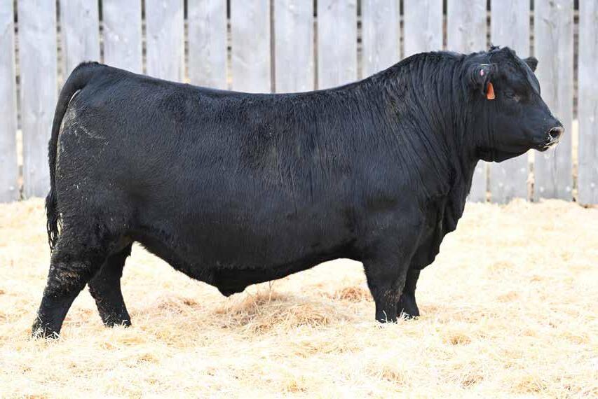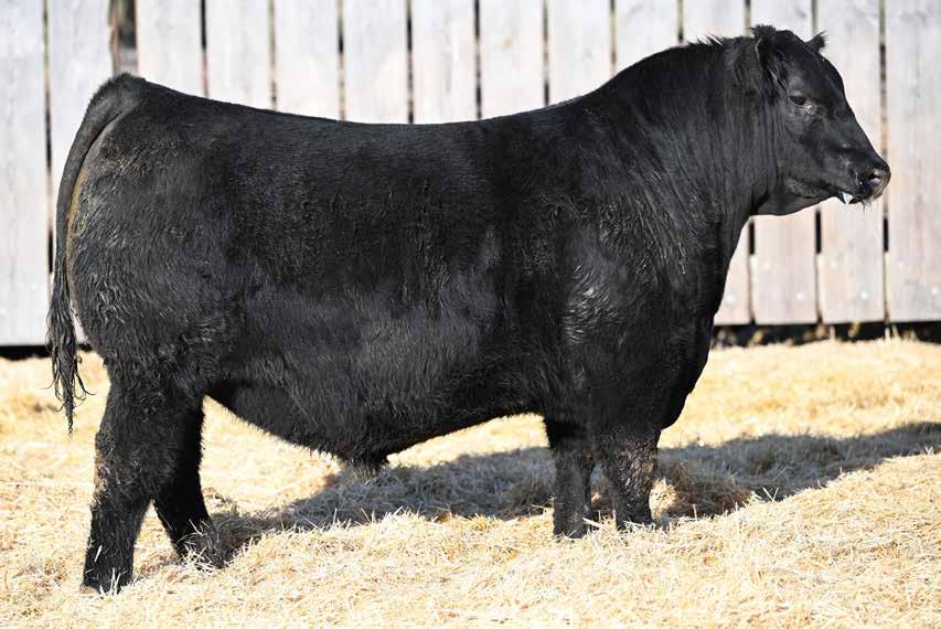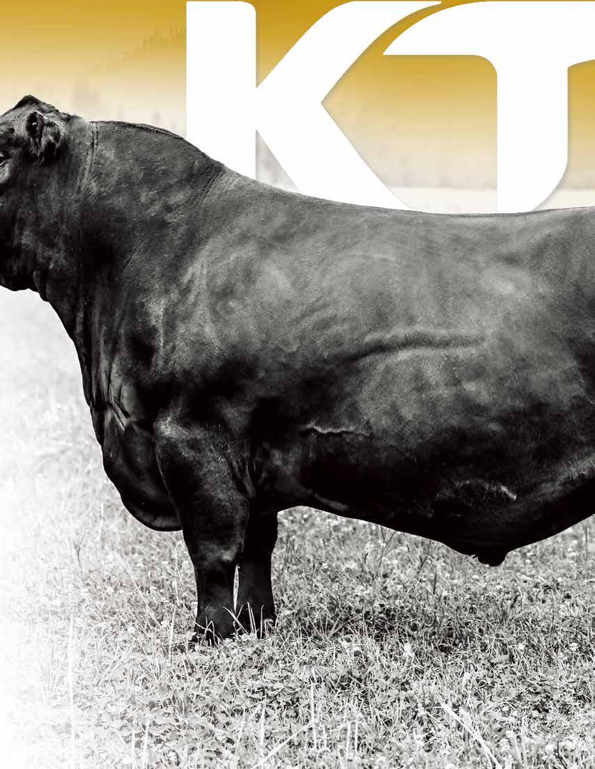 KT Deep End 5063 is one of the most exciting individuals ever born at KT Ranches. We had high expectations for the first group of Coleman Mendoza 271 sons, and they have lived up to every expectation. Mendoza was our pick of the Coleman bull sale in part because of his incredible phenotype, and a big part because of his dam Coleman Donna 5247, one of our favourite cows at Coleman’s. Deep End is stacked with great cows on both sides of his pedigree. KT Countess 3342 was the lead off and co-high selling female in the 2024 fall sale and has turned into a beautiful Angus female, who has hit the ground running. We showed two full sisters to Deep End with KT Countess 5135, being reserve senior heifer calf champion at Canadian Western Agribition. KT Countess 5106 was a class winner at Agribition, and one of the highlights of the Angus Collection to Park view and Shologan. KT Deep End 5063 is a highperforming bull that does a lot of things right. Big bodied, huge hip, awesome top, hair, and back leg as well as true Angus character. A bull we have high hopes for and a definite sale highlight.