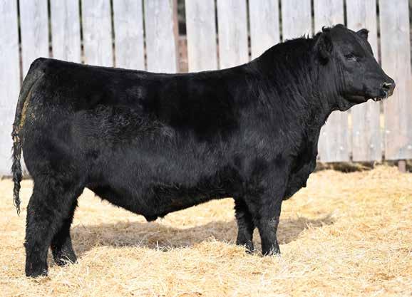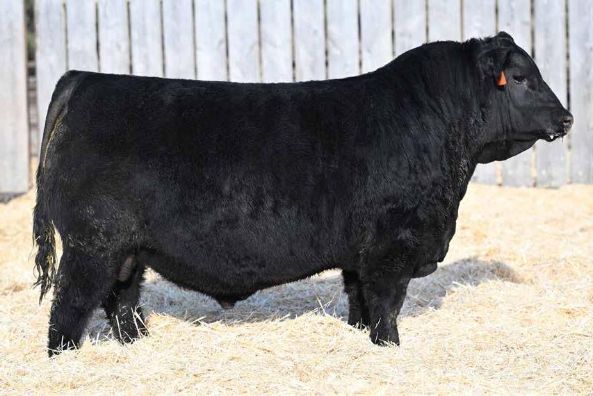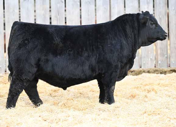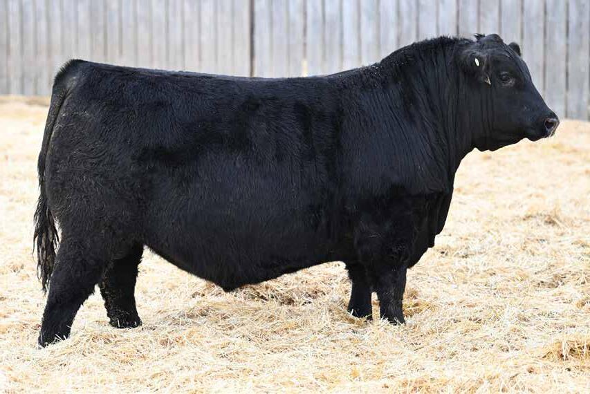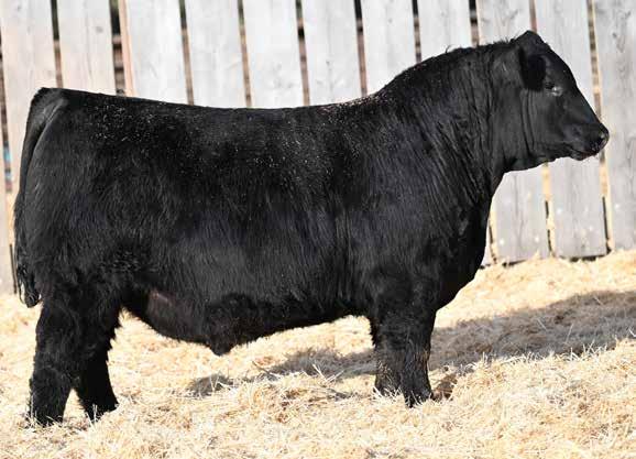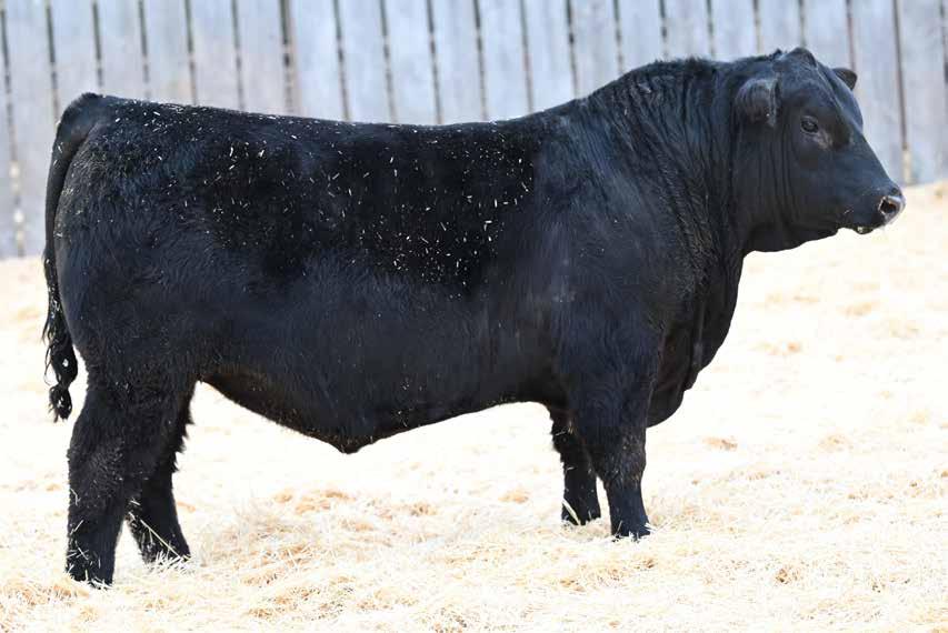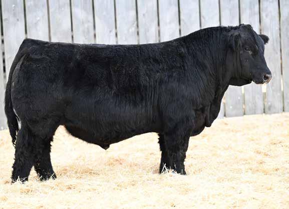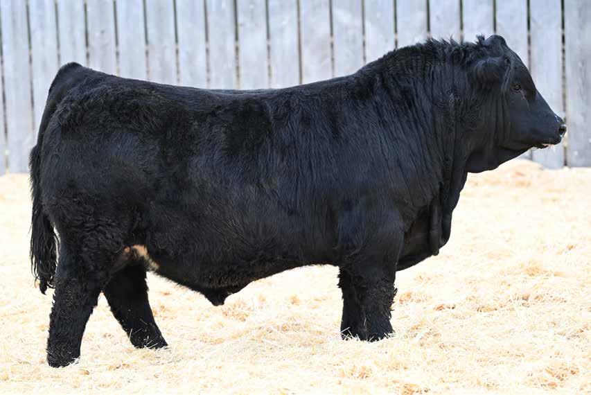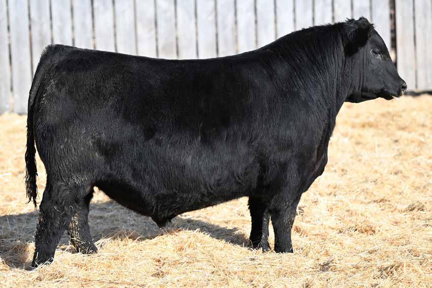 KT Deep End 5063 is one of the most exciting individuals ever born at KT Ranches. We had high expectations for the first group of Coleman Mendoza 271 sons, and they have lived up to every expectation. Mendoza was our pick of the Coleman bull sale in part because of his incredible phenotype, and a big part because of his dam Coleman Donna 5247, one of our favourite cows at Coleman’s. Deep End is stacked with great cows on both sides of his pedigree. KT Countess 3342 was the lead off and co-high selling female in the 2024 fall sale and has turned into a beautiful Angus female, who has hit the ground running. We showed two full sisters to Deep End with KT Countess 5135, being reserve senior heifer calf champion at Canadian Western Agribition. KT Countess 5106 was a class winner at Agribition, and one of the highlights of the Angus Collection to Park view and Shologan. KT Deep End 5063 is a highperforming bull that does a lot of things right. Big bodied, huge hip, awesome top, hair, and back leg as well as true Angus character. A bull we have high hopes for and a definite sale highlight.